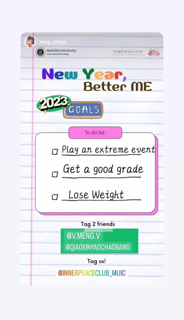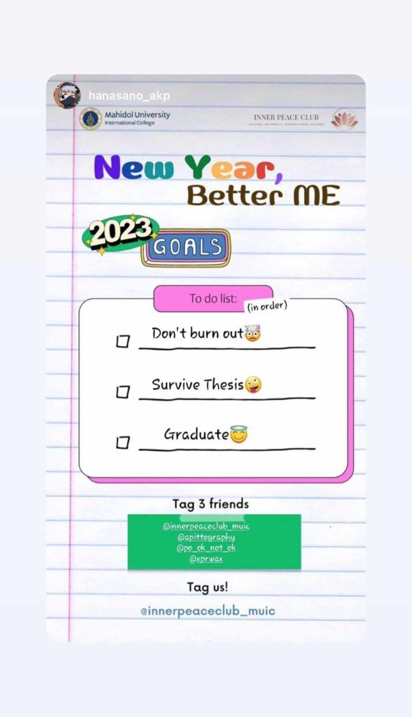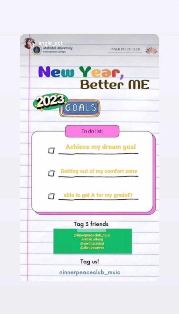 “New Year, Better Me” was Mahidol University International College’s (MUIC) Inner Peace Club’s first and online activity during Trimester 2/2022-2023.