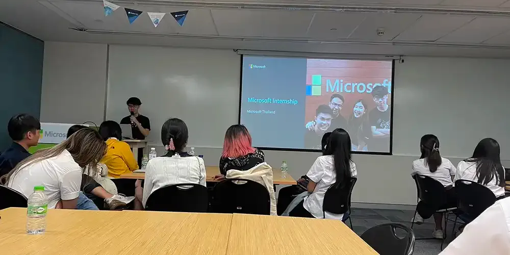 The hosts warmly welcomed the 40 students who hail from several majors. After having lunch at Microsoft Thailand's canteen, the students attended a presentation by one of the staff members who shared his personal journey and offered insights into working at the company. The staff member discussed Microsoft's commitment to innovation and introduced the students to AI services like Microsoft Azure. The presentation also covered a range of Microsoft products and services that are revolutionizing the world.