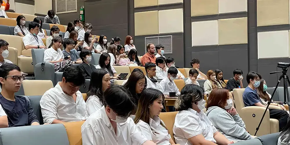 Kicking off the first day was the roundtable discussion “Women’s Leadership In Politics, Diplomacy and Law” at 10:00 am at the newly opened Screening Room on the 5th Floor of Aditayathorn Building. The panel of guests was composed of: H.E. Anna Jakenberg Brinck, Minister Counselor and Deputy Head of Mission of the Embassy of Sweden; Ms. Saranya Tangwongkit, Country Program Coordinator (Thailand), UN Women; Ms. Kunthida Rungruengkiat, Director, Progressive Movement Foundation; Ms. Tisana Choonhavan, newly-elected Member of Parliament (Move Forward Party) and MUIC Alumna; Ms. Jomtien Jansomrag, Program Officer, Raks Thai Foundation; and Ms. Rukchanok Srinork, newly-elected Member of Parliament (Move Forward Party).