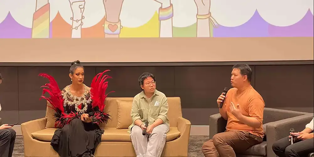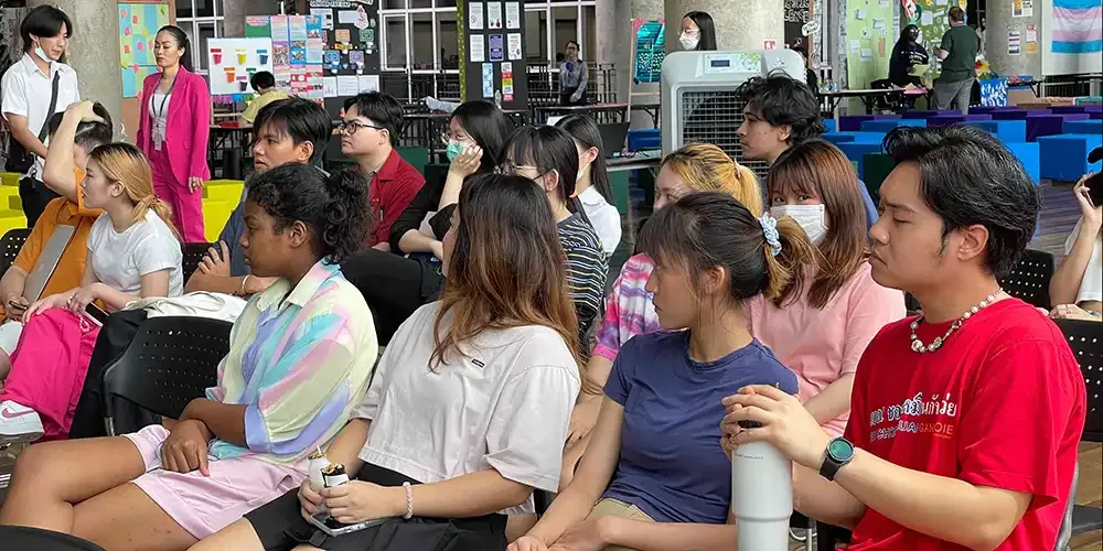 The following day, June 14, a workshop entitled “Out 4 Mental Health” was conducted by APCOM from 10:00 am to 2:00 pm at A249, Aditayathorn Building. Also at 10:00 am, a talk was held in Charinyarasami Hall entitled “Dream with Pride” featuring Khun Fon (Zapsing CEO) and Khun Ko (ThaiTGA) as guest speakers. Yet a third event also started at the same time at the Activity Area of the 2nd Floor, Aditayathorn Building entitled “Circle of Life” featuring Khun Pattera Puttisuraseat, Khun Wanchai Chankhunthod, Khun David Bigander, Khun Watcharin Francis Angus, and Khun Settha Mateepratchayankul as guest speakers.