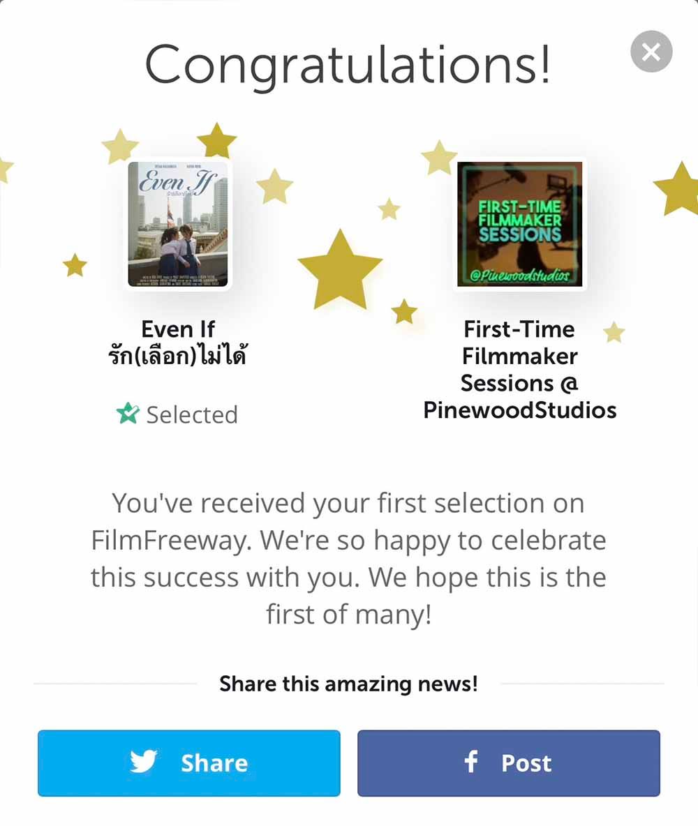 Menawhile, Mr. Thitipat Kowatanawinta (director) and Mr. Phrasit Saraputtised (producer) have submitted their work, entitled "Even If," a short film thesis project for the Media and Communication Program, to the Lift-Off Global Network Film Festival, which aims to showcase emerging talent from around the world. Their work has been officially selected to screen at 2022 Lift-Off's first time filmmakers festival, which runs from October 24 to November 7, 2022.