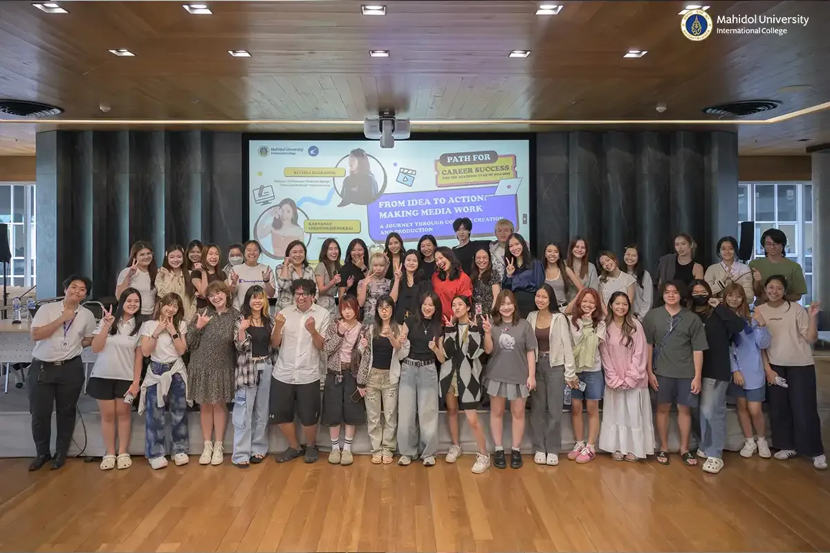 The Alumni Affairs and Career Development Group, in collaboration with the Media and Communication Program and the Career Insights Club, Mahidol University International College (MUIC) organized the third session of Path for Career Success for the Academic Year of 2024-2025 on June 25, 2025 at Charinyarasami Hall, Aditayathorn Building. The event’s theme was “From Idea to Action: Making Media Work – A Journey Through Content Creation and Production” and featured three MUIC alumni speakers: