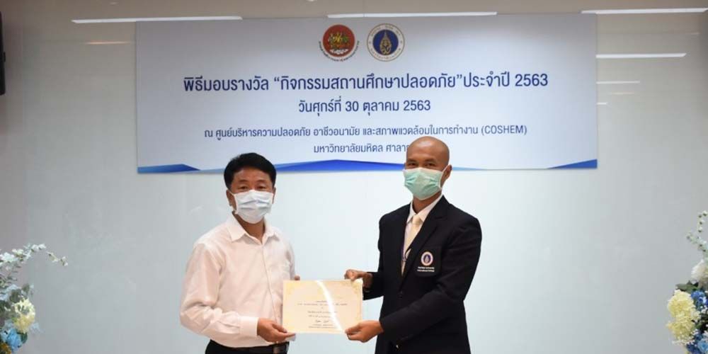 Mahidol University International College (MUIC) was given the Outstanding Award for Safety Academy and Good Wellness 2020 by the Department of Labor Protection and Welfare on October 30, 2020.