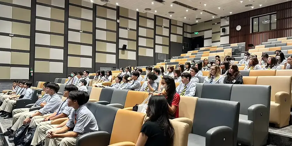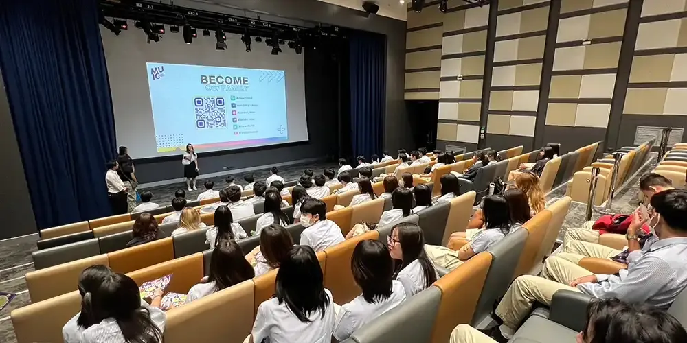 A group of 80 teachers and students from Harrow International School Bangkok visited Mahidol University International College (MUIC) on June 7, 2024 at A556 Spectrum Screening Space, Aditayathorn Building.
