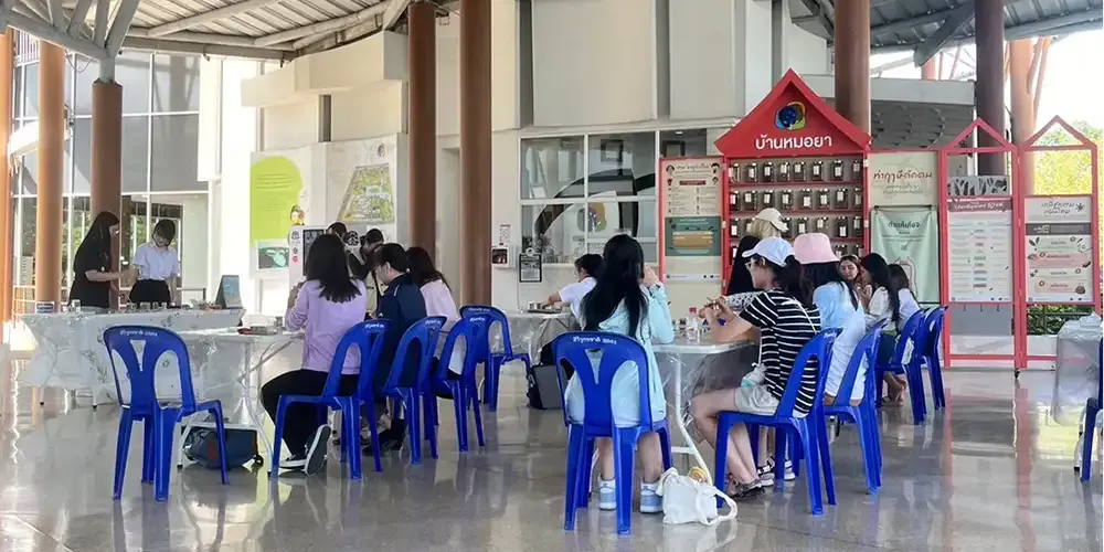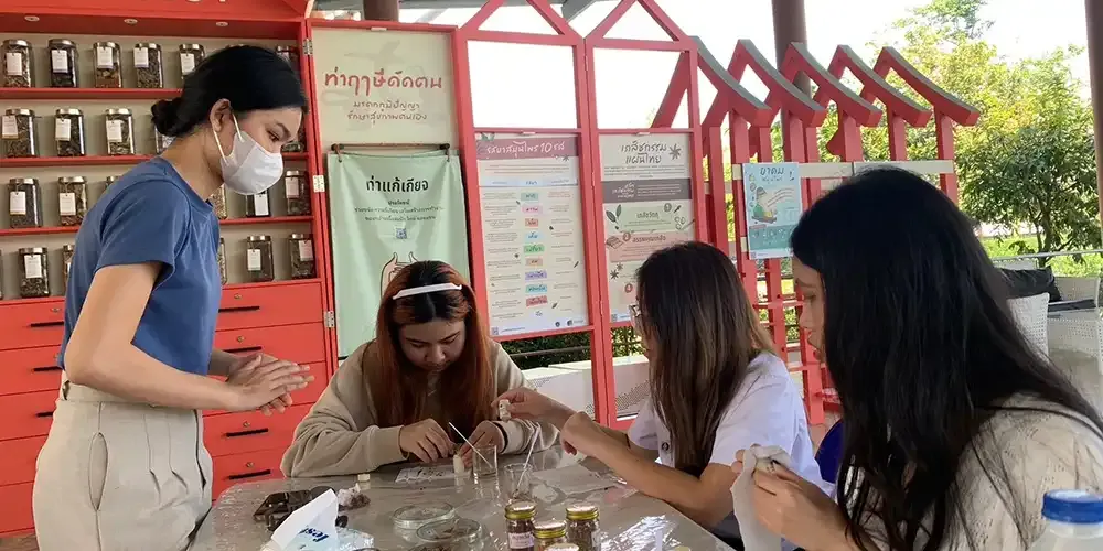 The attendees were given a tour of Sireeruckhachati Nature Learning Park inside Mahidol University's Salaya campus where they learned much about various herbs. They were also taught how to create their own "yadom," a handcrafted inhaler, to take home as a memento of the experience.