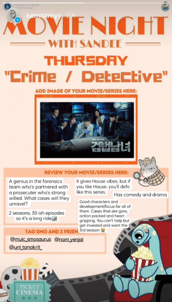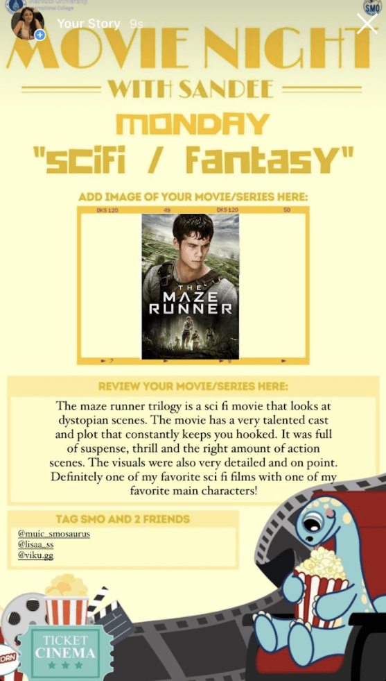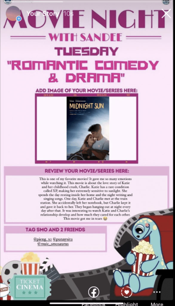 Participants reviewed their favorite movies or TV series according to a daily theme from November 8 to 14, 2021, including fantasy, romantic comedy, action, crime, horror, cartoon and musical.