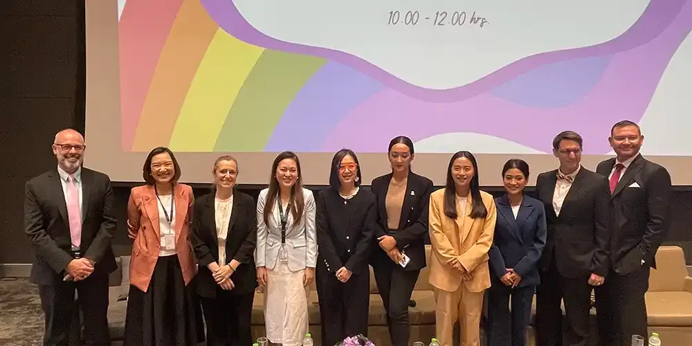 The panelists were: H.E. Anna Jakenberg Brinck, Minister Counselor and Deputy Head of Mission, Embassy of Sweden; Ms. Saranya Tangwongkit, Country Program Coordinator (Thailand), UN Women; Ms. Kunthida Rungruengkiat, Director, Progressive Movement Foundation; Ms. Tisana Choonhavan, newly-elected Member of Parliament (Move Forward Party) and MUIC Social Science Alumna; Ms. Jomtien Jansomrag, Program Officer, Raks Thai Foundation; and Ms. Rukchanok Srinork, newly-elected Member of Parliament (Move Forward Party).