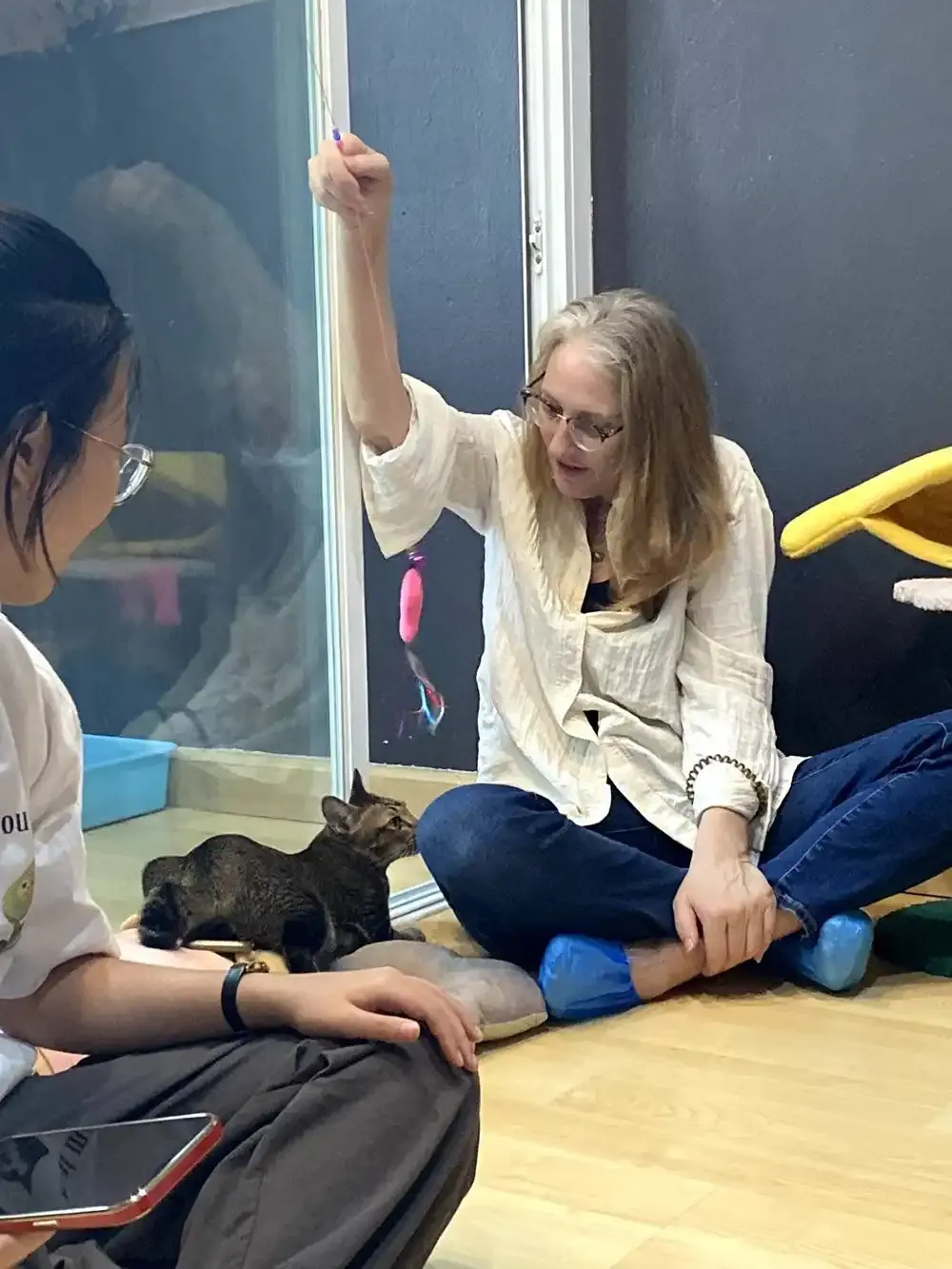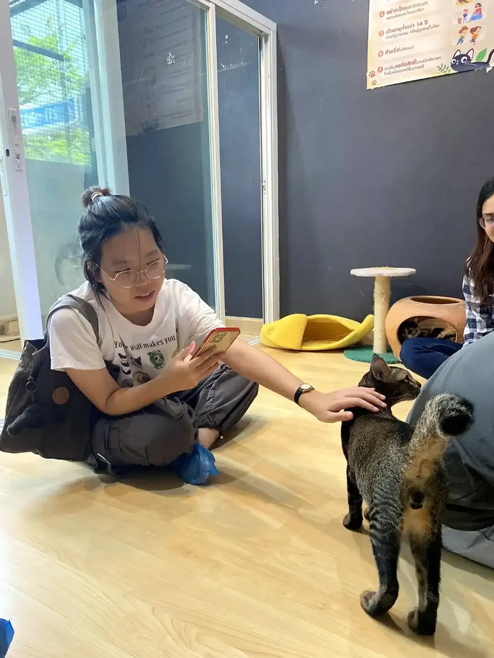 As a result, the 15 participating students were able to learn much about cats and were able to get an idea of the size of the stray cat population in Thailand. Since the cafe was small, participants were divided into three groups and went to go see the cats in rounds while the other two groups had lunch.