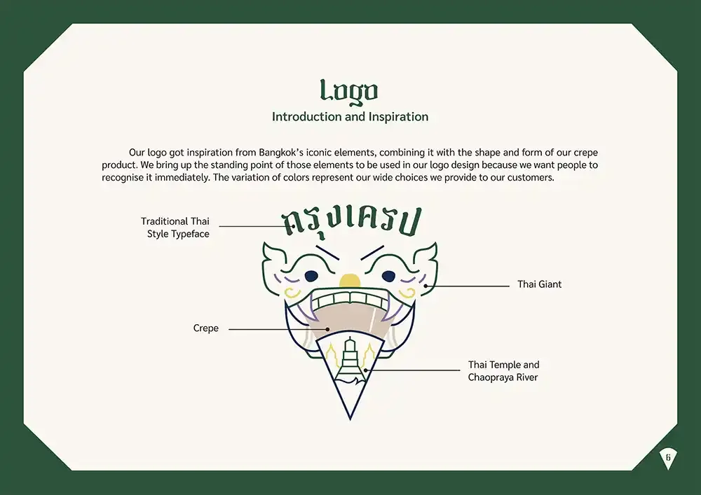 Asked what her favorite artwork in her portfolio is, Jatuporn answered that it is KrungCrepe, an integrated branding project. “I was satisfied with all the graphics and outcomes. This project was started from my own experience in a crepe shop. I found that there were various pain points in the customer experience. Thus, I want to design my own crepe shop brand that can solve all those pain points.”