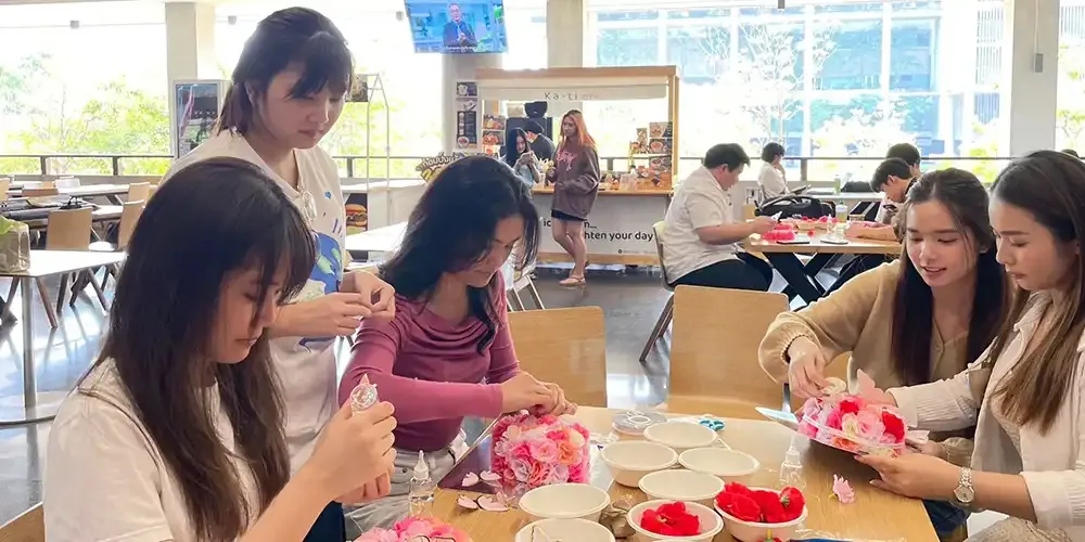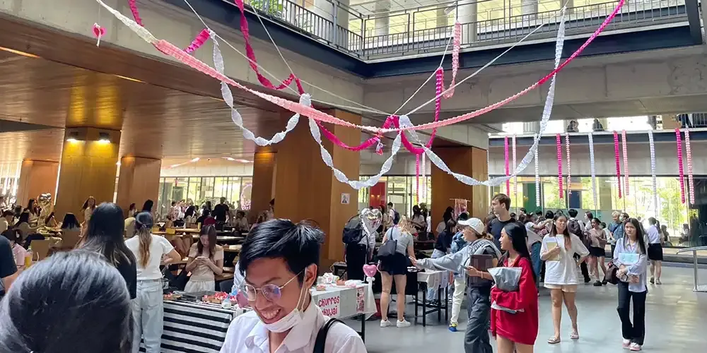 This event occurs on the 14th of February at Ground Floor of Adityathorn Building as well as the Charinyarasami Hall. Here we have quite a few student stores that open a booth at the cupid market, a love themed market for everyone and anyone to explore. Not only that, our event also had quite a spectacular booth from clubs who took their time to open a booth and entertain everyone with their workshop. As well as our very own workshop where participants can make their own Rosie Heart for their significant other while we also have our own stickers booth in which participants can purchase stickers to put on someone else as a form of affection showing, but that’s not all as anyone who have the most stickers will be award an exclusive MU bear for free of charge.