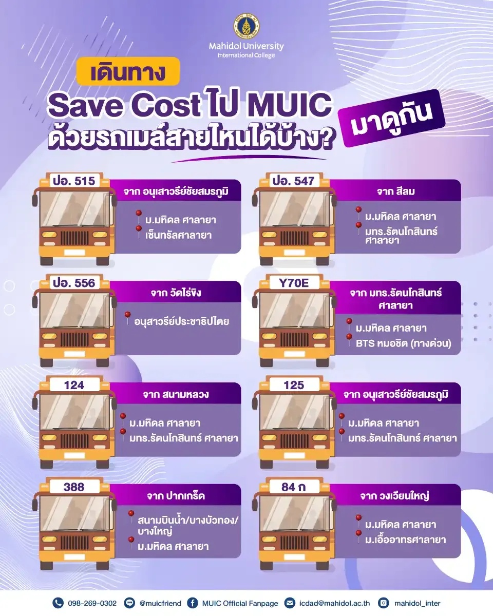 จะอยู่ใจกลางเมือง หรือปริมณฑลก็มีรถเมล์ให้เดินทางมายัง MUIC แบบง่ายๆ สะดวกสบาย