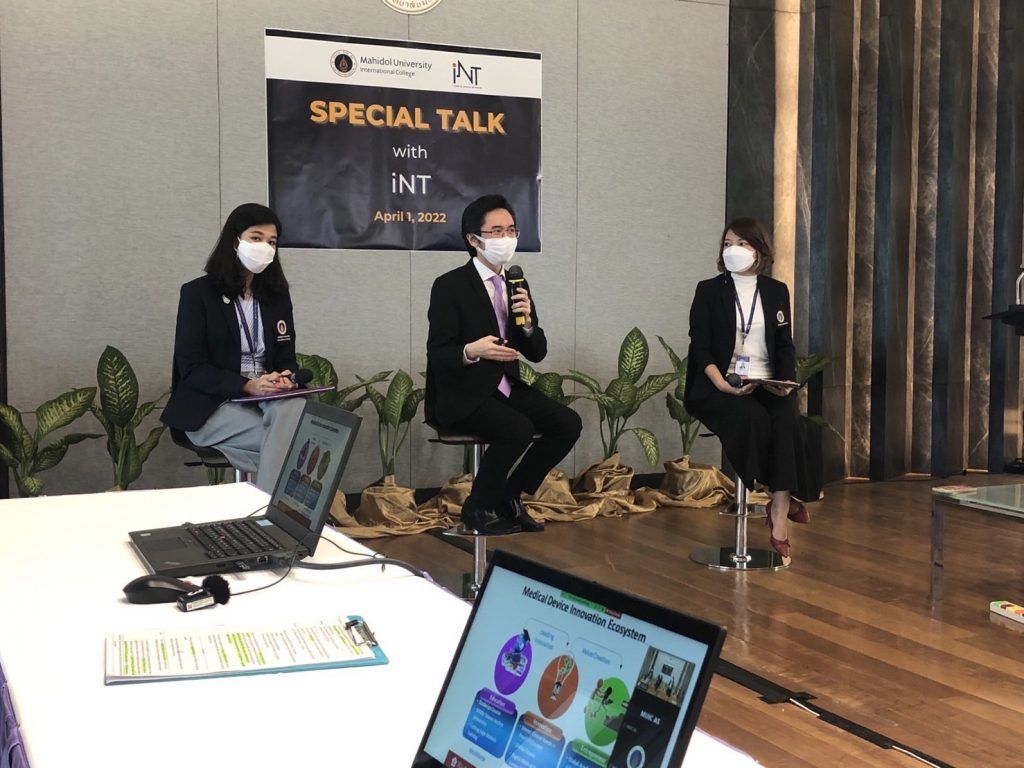 Mahidol University International College’s (MUIC) Academic Services Group partnered with Mahidol University’s Institute for Technology and Innovation Management (iNT) in organizing “Special Talk with iNT” on April 1, 2022 at Charinyarasami Hall and via Zoom Meeting.