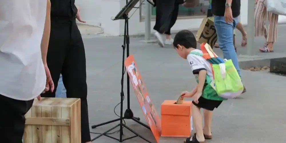 The volunteers tried their best to raise funds to support the upcoming five-day Volunteer Camp at the end of this trimester. The usual routine of having groups of volunteers encourage passers-by to drop cash into the donation box was supplemented by musical performances to attract the attention of more people.