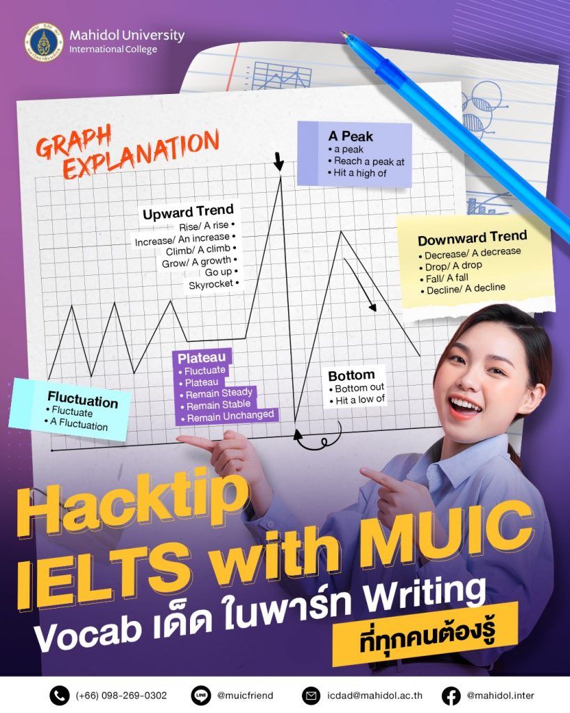สำหรับน้องๆ คนไหนที่กำลังเตรียมตัวสอบ IELTS อยู่ อาจกำลังกังวลกับคำศัพท์ใน Writing Part ที่ค่อนข้างยากและกว้างเกินไป แต่ไม่ต้องกังวลใจไปเพราะวันนี้ทาง MUIC จะ Cracking IELTS Vocab ในส่วนของ Writing มาฝากกัน