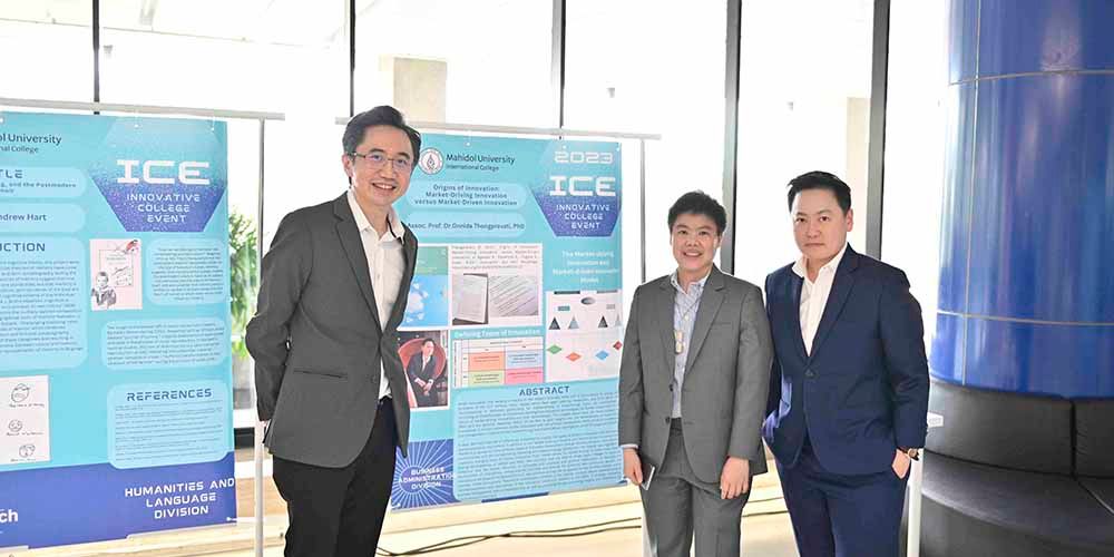 วันที่ 17 กุมภาพันธ์ 2566 ศาสตราจารย์ แพทย์หญิงจุฬธิดา โฉมฉาย คณบดีวิทยาลัยนานาชาติ มหาวิทยาลัยมหิดล เป็นประธานเปิดกิจกรรม Innovative College Event (ICE) ณ ห้องจรินทร์ยารัศมิ์
