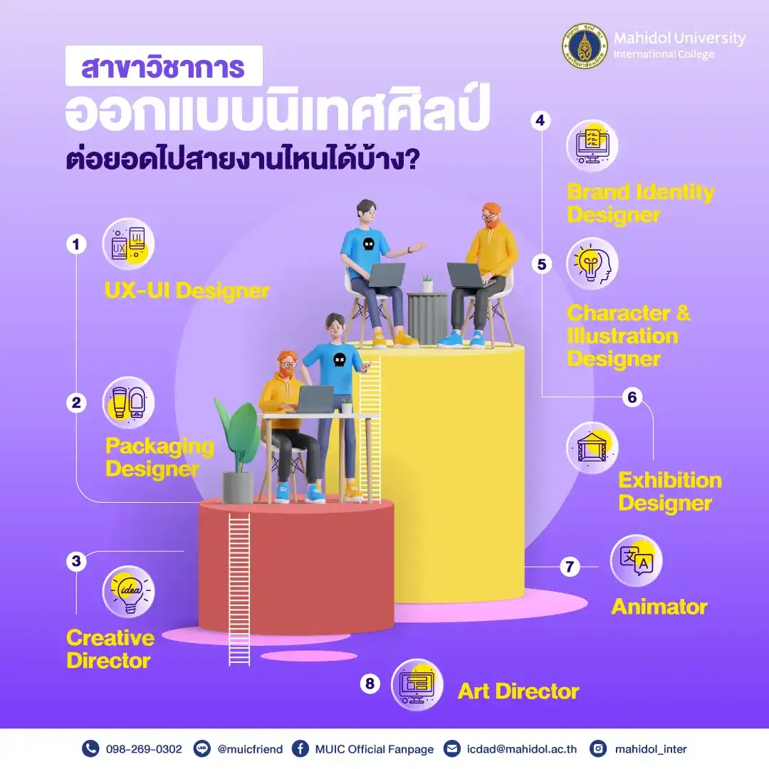 For those who have a passion for various design disciplines, whether it's art, event design, websites, or even different types of applications, studying Communication Design at MUIC allows you to directly learn and advance in these career paths.
