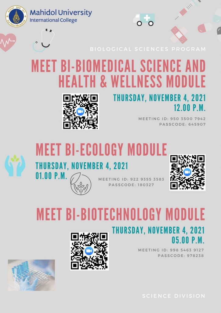- 12.00 p.m.: Meet BI-Biomedical Science and Health & Wellness Modules