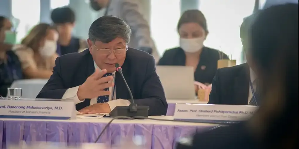Mahidol University International College (MUIC) officials led by Prof. Chulathida Chomchai, M.D., MUIC Dean, together with MUIC executives, welcomed Clinical Prof. Emeritus Piyasakol Sakolsatayadorn, M.D., Chairman of the Mahidol University Council, and members of the University Council during the latter’s visit to MUIC on July 12, 2023.