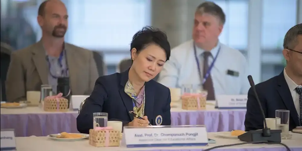 After welcoming the guests at Charinyarasami Hall, 3rd Floor, Aditayathorn Building, the MUIC team gave a presentation of the college’s policies and performance in the past year along with its current objectives that are aligned with MU’s “Super Cluster: MU the Way Forward 2022.”