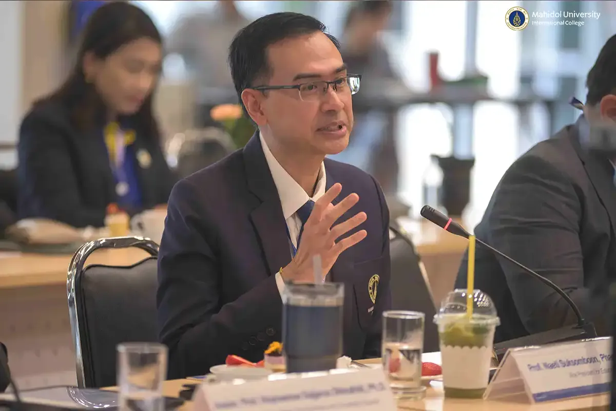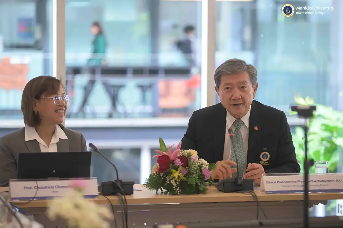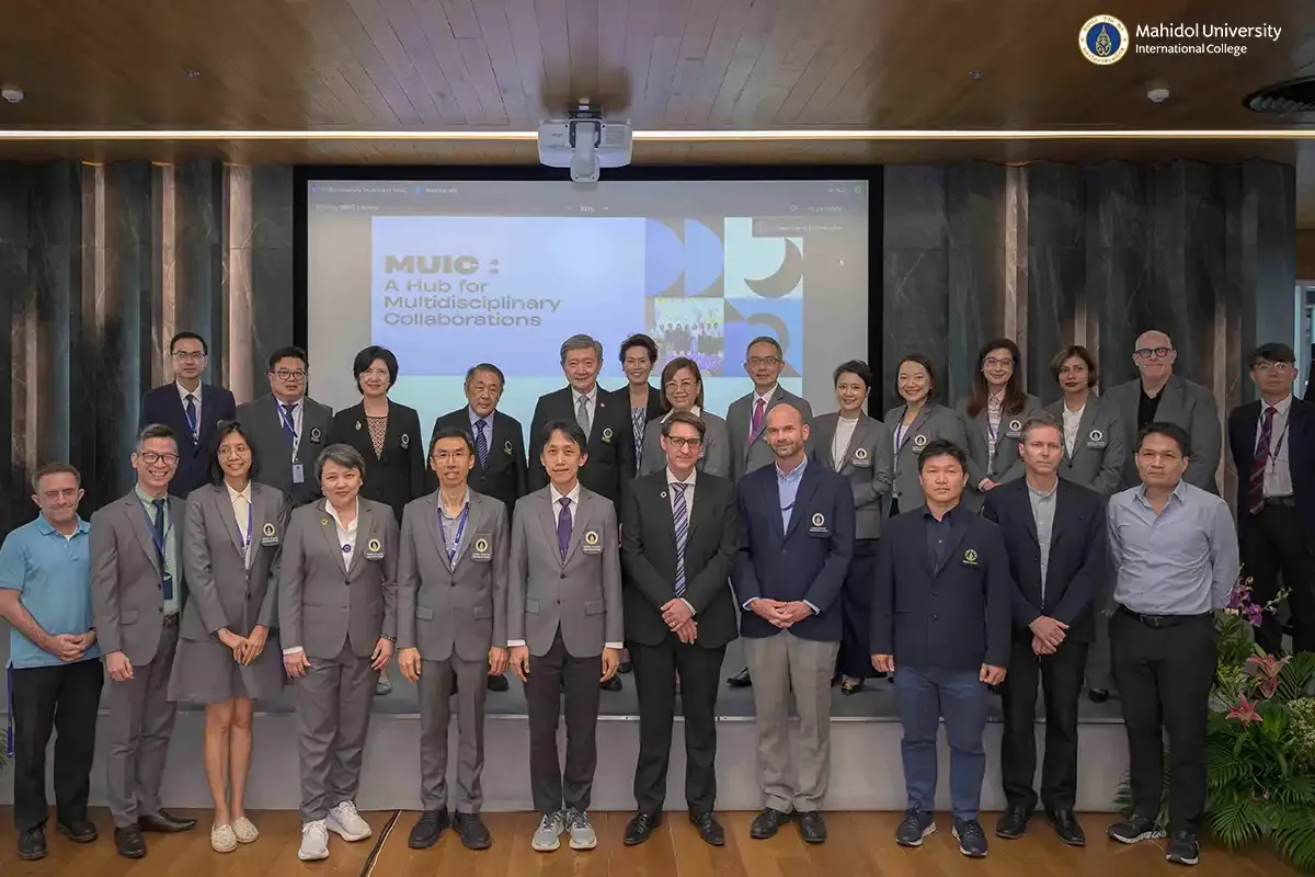 Mahidol University International College (MUIC) officials led by Prof. Chulathida Chomchai, M.D., MUIC Dean, together with MUIC executives, welcomed officials of the Mahidol University Council under its chairman, Clinical Prof. Emeritus Piyasakol Sakolsatayadorn, M.D., during the latter’s visit: 4 (Session 2/2025) to MUIC on June 11, 2025.