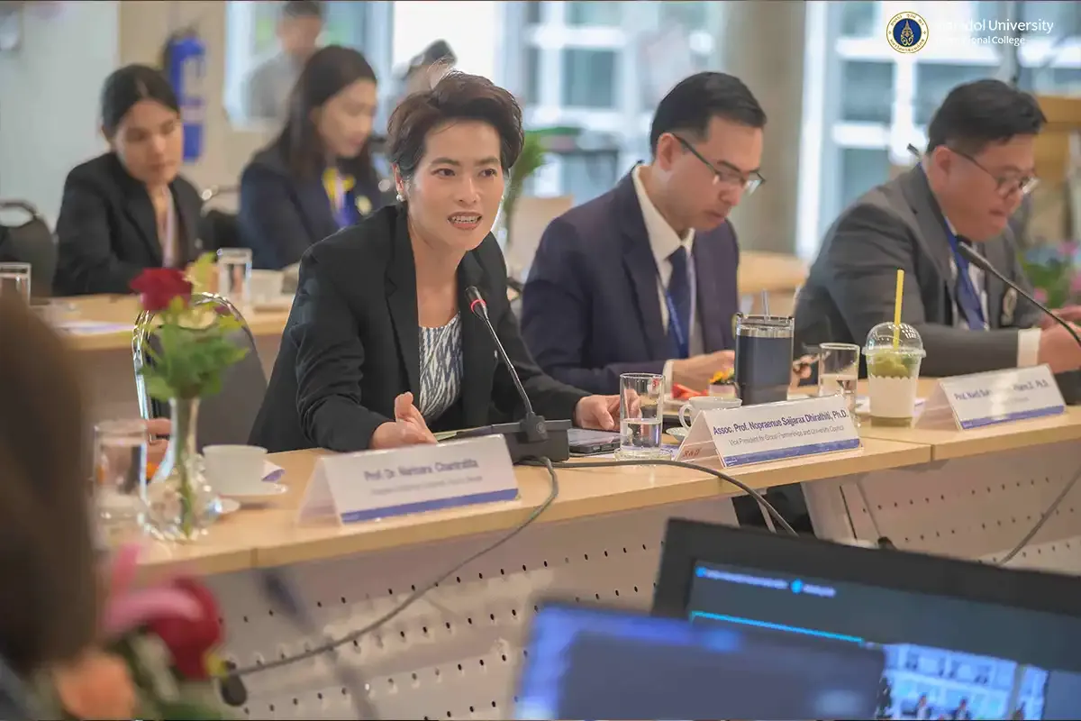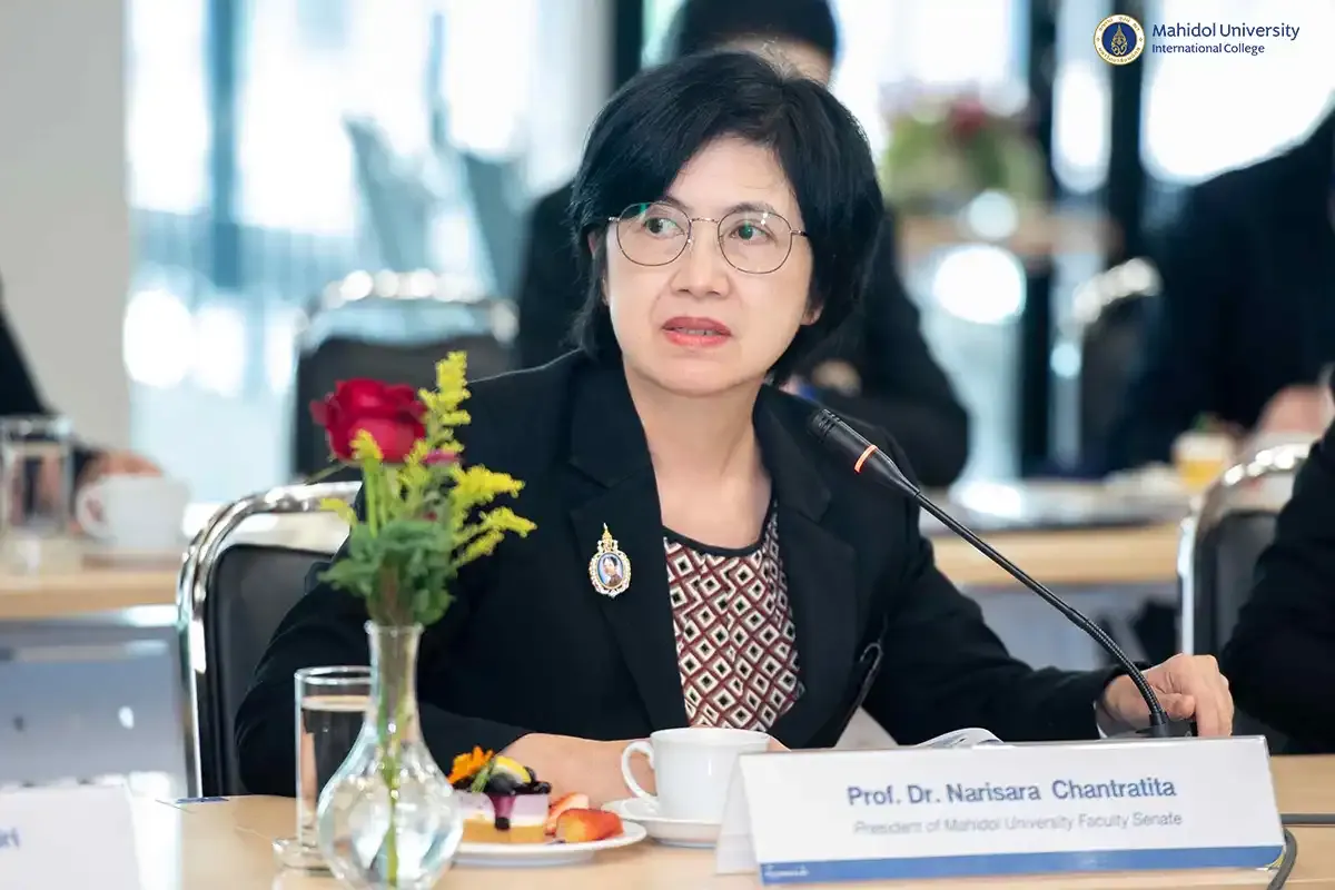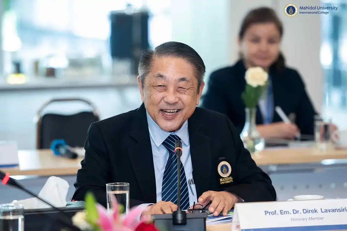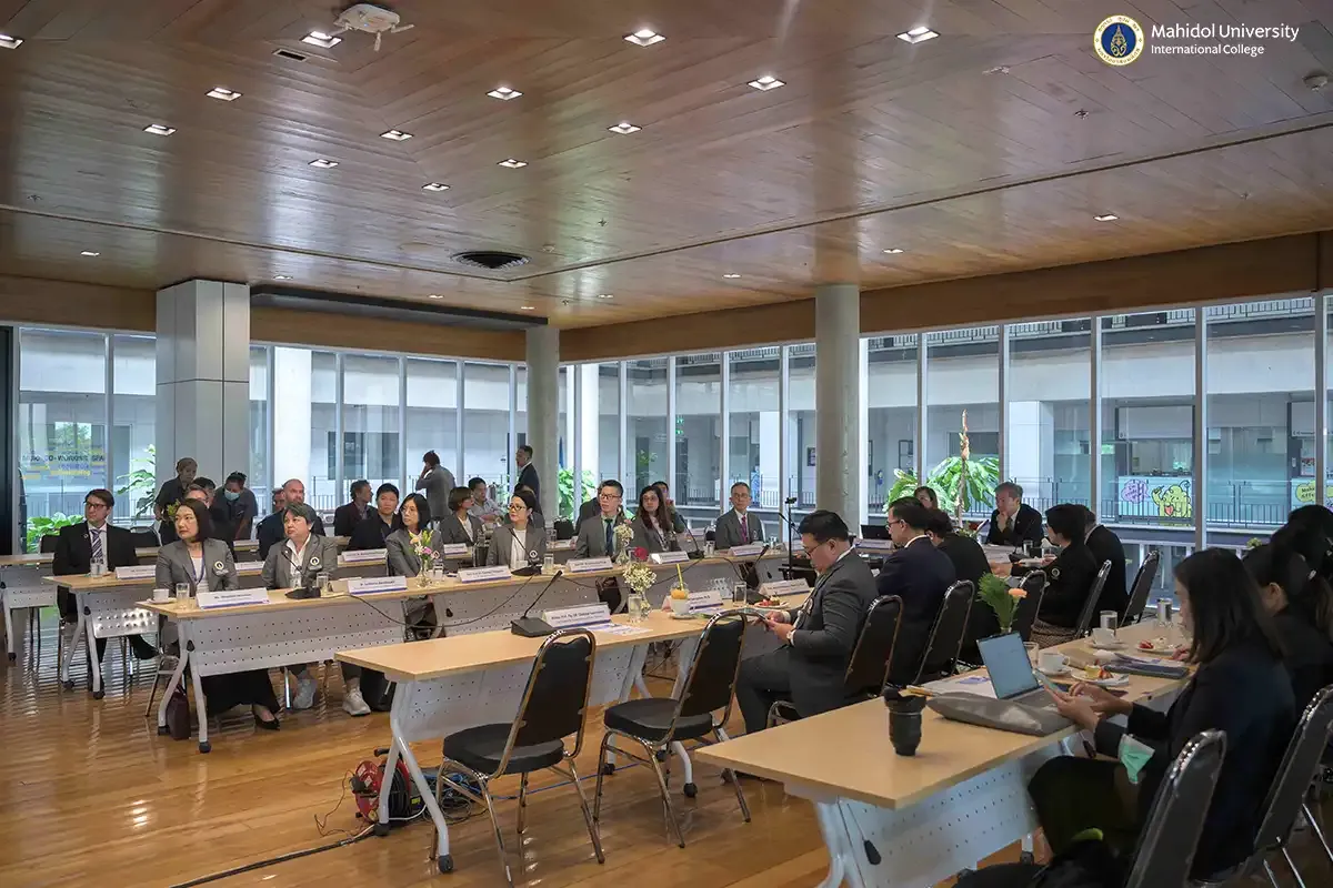 Mahidol University International College (MUIC) officials led by Prof. Chulathida Chomchai, M.D., MUIC Dean, together with MUIC executives, welcomed officials of the Mahidol University Council under its chairman, Clinical Prof. Emeritus Piyasakol Sakolsatayadorn, M.D., during the latter’s visit: 4 (Session 2/2025) to MUIC on June 11, 2025.