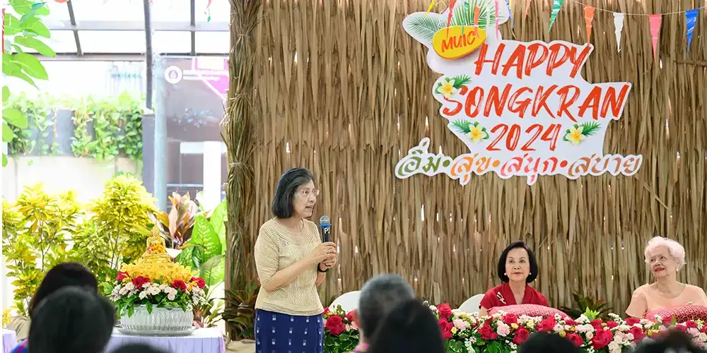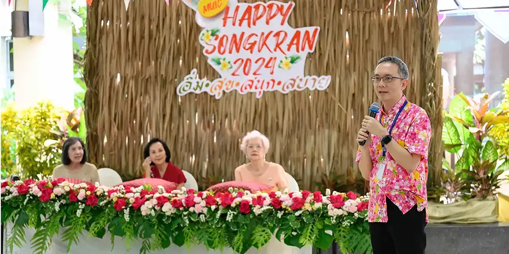 Mahidol University International College (MUIC) held “MUIC Songkran 2024” to celebrate the festive Thai lunar new year on April 9, 2024 at the Ground Floor of MUIC Building 1. Assoc. Prof. Dr. Yingyot Chiaravutthi, Associate Dean for Finance and Human Resources represented the Dean and delivered the opening remarks.