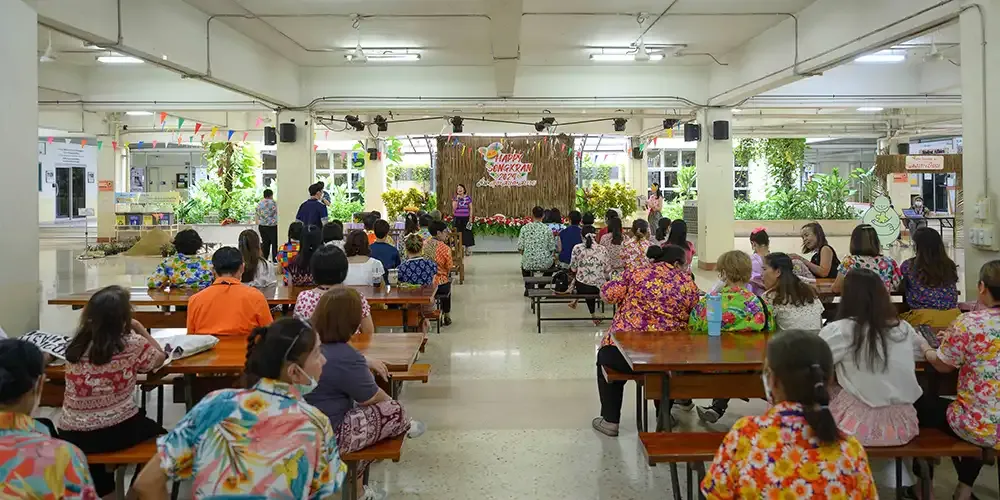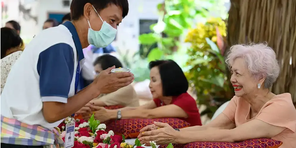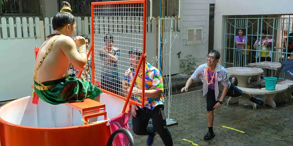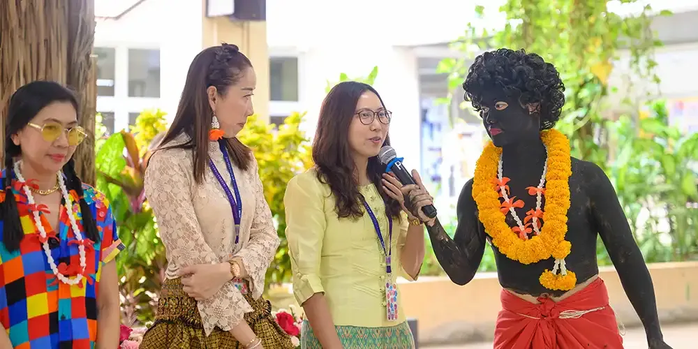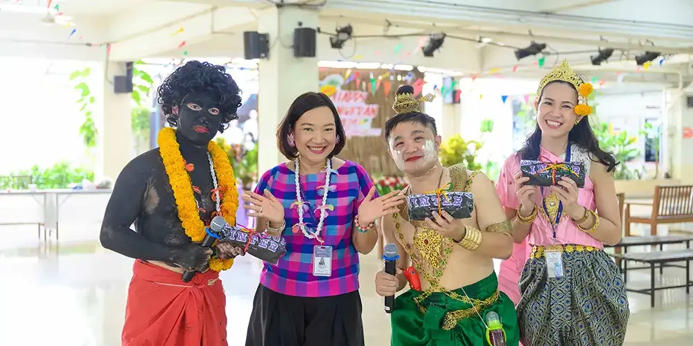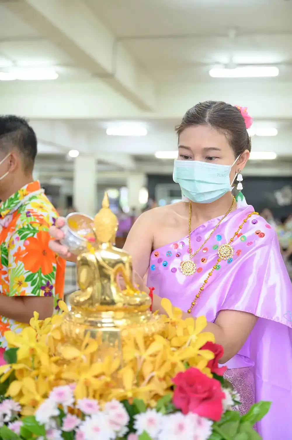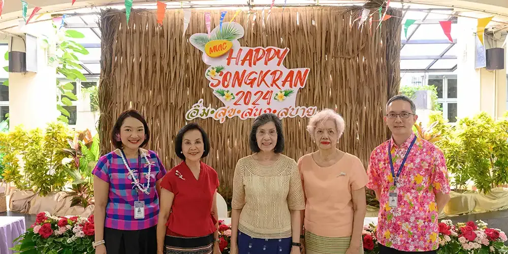 There were many Thai traditional activities such as the bathing rite of the Buddha image (“Song Nam Phra”), pouring of sacred water on the hands of the former Deans, Prof. Emeritus Dr. Maleeya Kruatrachue, Prof. Emeritus Dr. Rassamidara Hoonsawat, and former MUIC executive, Asst. Prof. Anchalee Pongpun (“Rod Nam Dam Hua”), and receiving the Thai New Year’s Eve blessing from them; IC popular vote, water games, photo booth, challenge games, Thai massage workshop, and Thai dessert workshop.