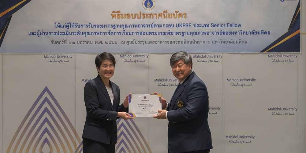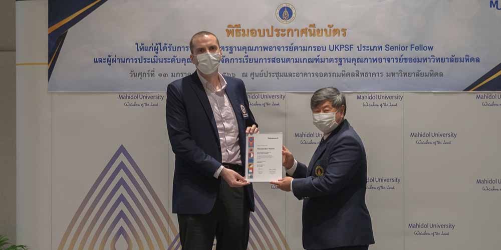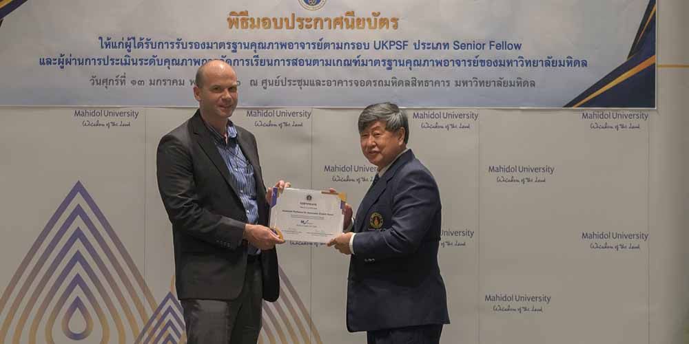 In the same event, the Mahidol University Professional Standards Framework (MUPSF) Senior Fellow certificates were also handed to Dr. Matthew Robert Ferguson, Humanities and Language Division (HLD) faculty member, and