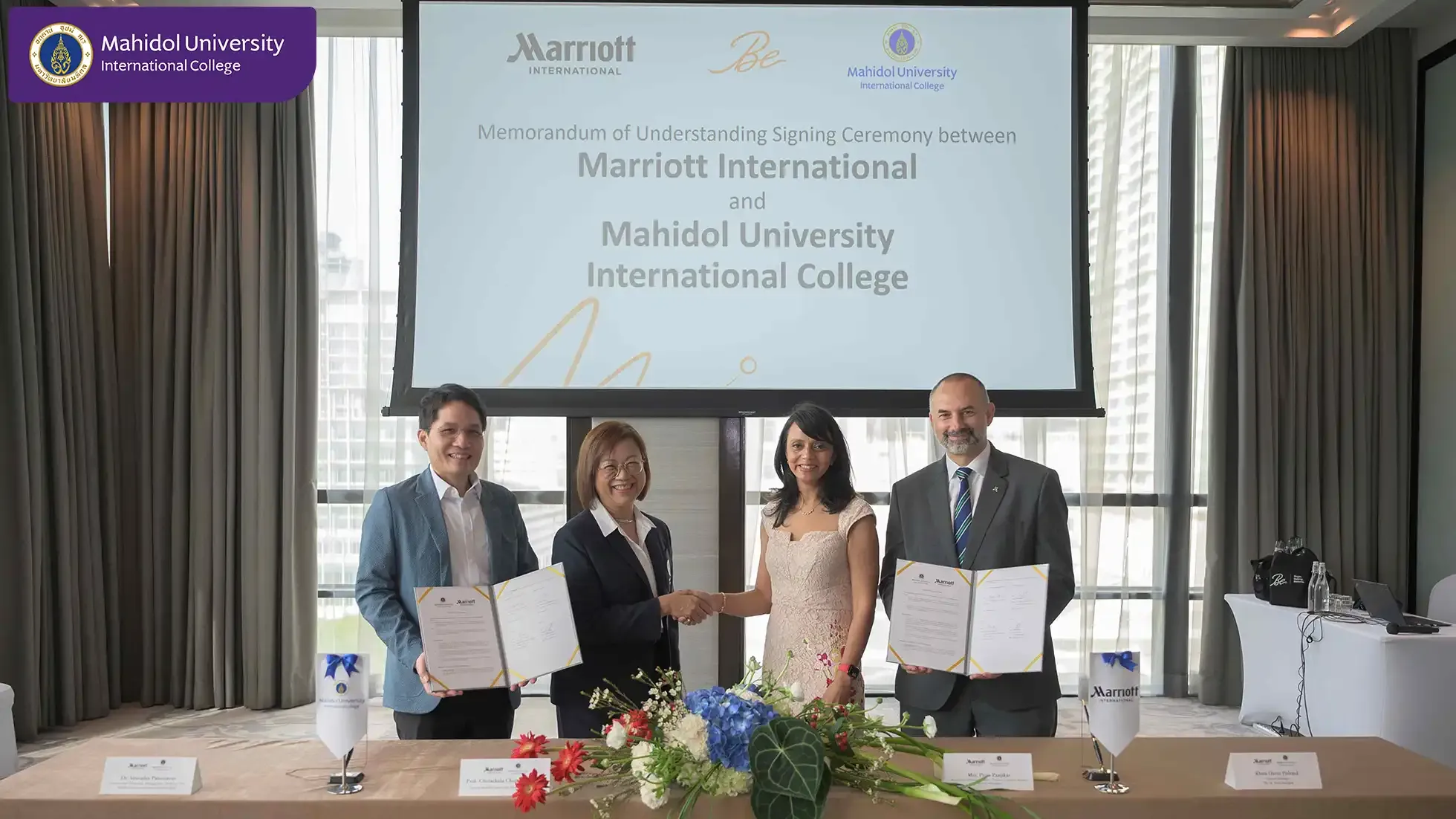 Mahidol University International College (MUIC) and Marriott International signed a Memorandum of Understanding (MOU) on December 20, 2024 that includes an internship program for students of the Travel and Service Business Entrepreneurship (BM-TSB) major program, and also research and special project collaborations between personnel of the two organizations.