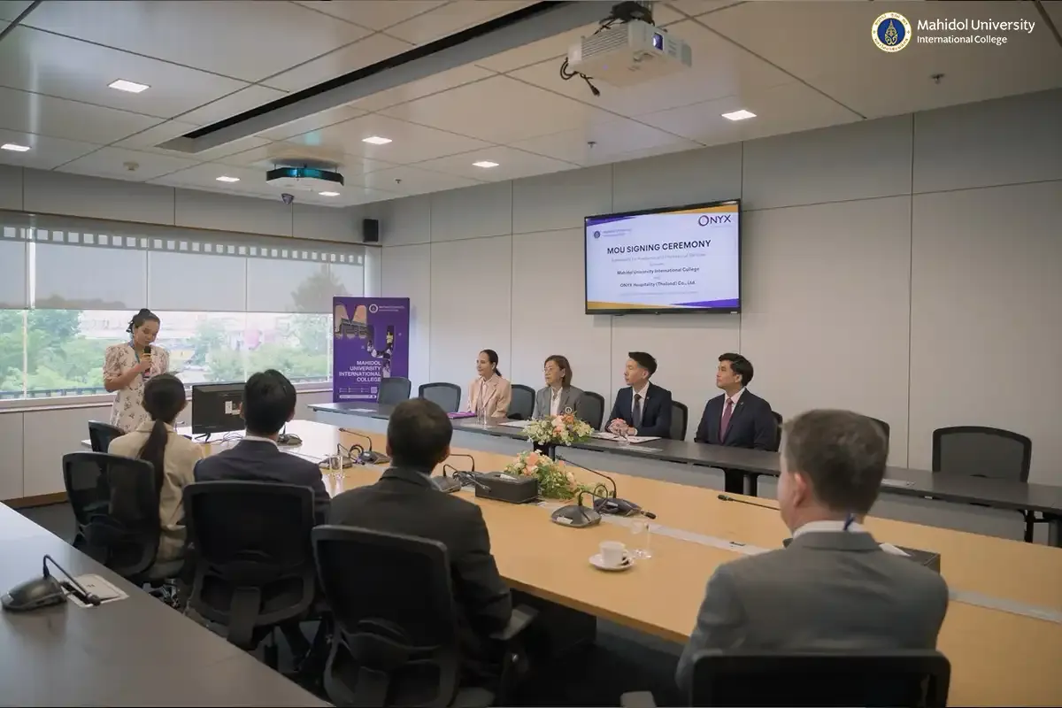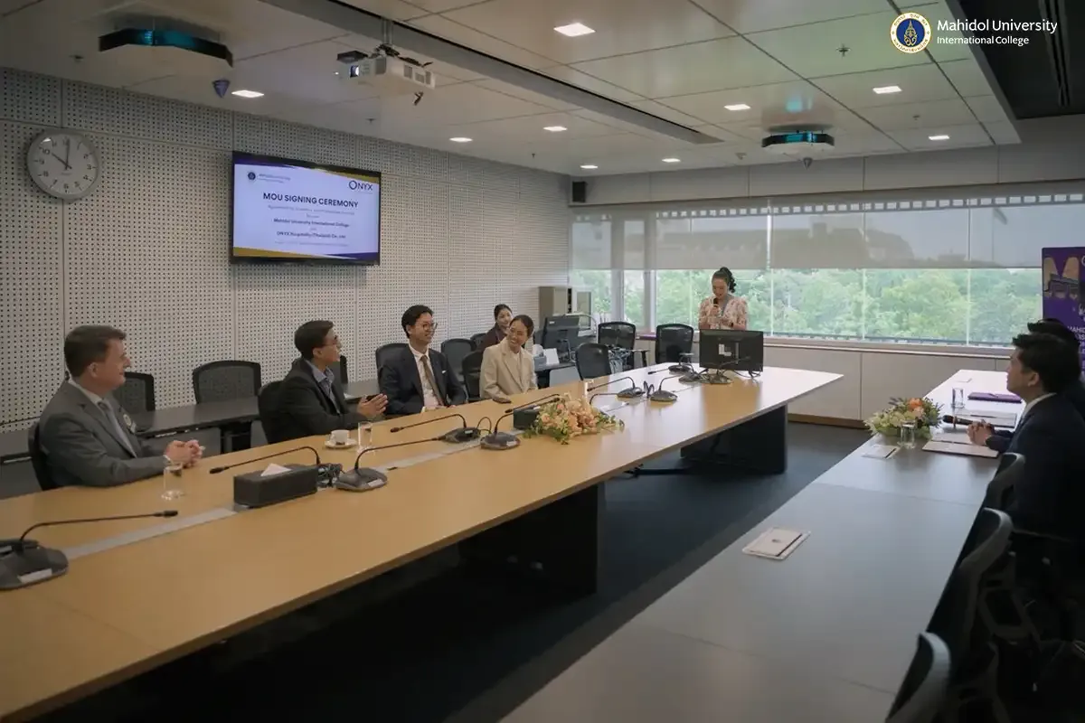 Mahidol University International College (MUIC), through its Academic Services Group, signed a Memorandum of Understanding (MOU) with ONYX Hospitality (Thailand) Co., Ltd. on August 7, 2025 at the Meeting Room A302, 3rd Floor, Aditayathorn Building.