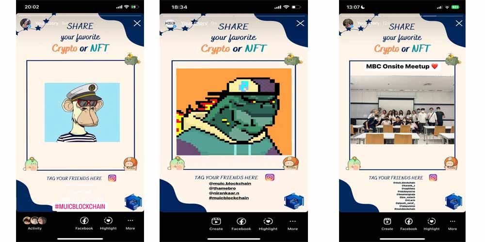 The club said this activity was targeted to all Mahidol University students, whether they are already interested or just starting to study this technology. The participants posted pictures of their favorite cryptocurrencies/NFTs on the club’s on-site meetup which was hosted biweekly on their Instagram stories. They were also asked to tag two friends using the hashtag #muicblockchain.