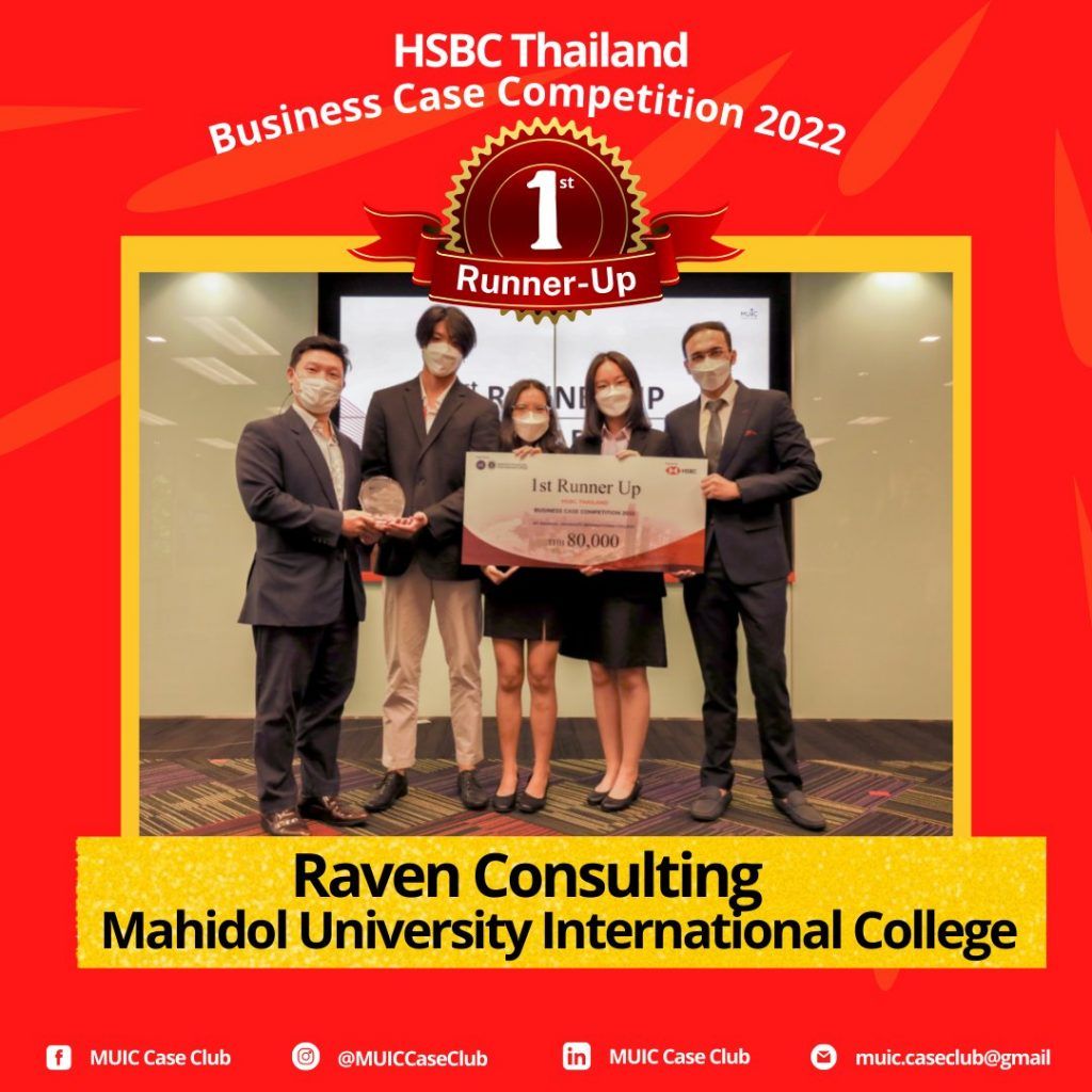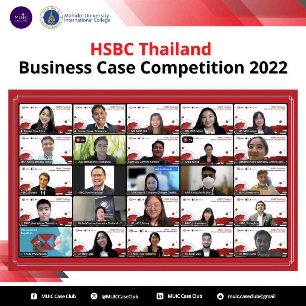Mahidol University International College’s (MUIC) Case Club successfully hosted HSBC Thailand Business Case Competition 2022 on April 23, 2022 with a team from MUIC winning 1st Runner-up.
