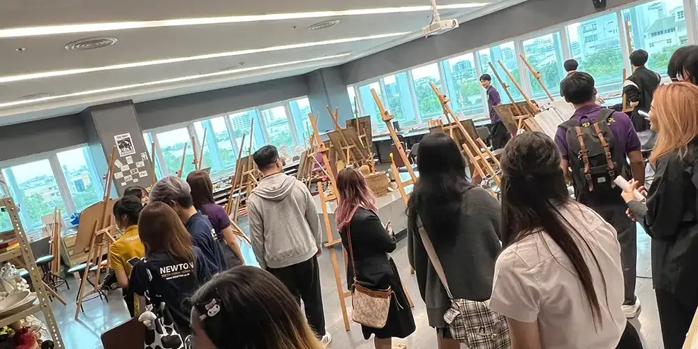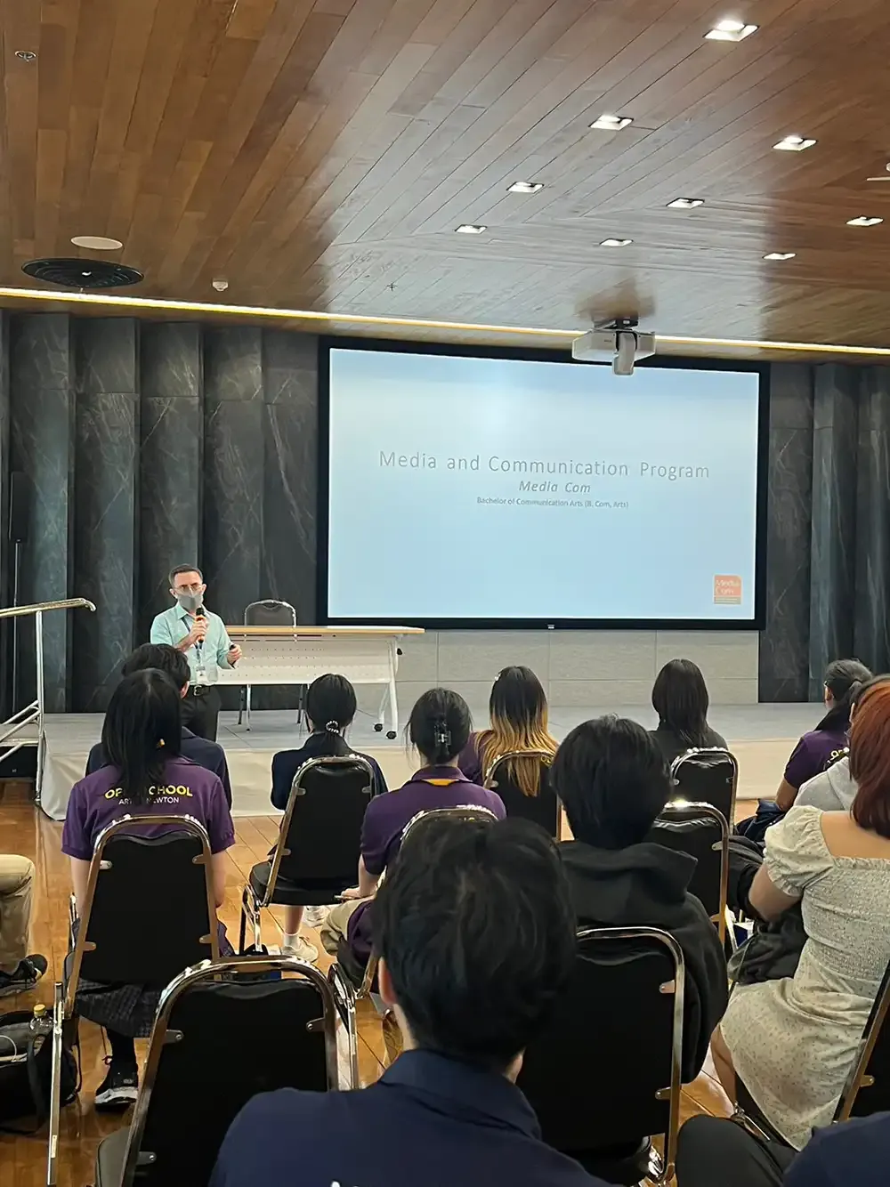 The visitors were later given a guided tour of MUIC buildings and FAA facilities (including Prism studio and Drawing Room) by MUIC students who told the high school students about their own activities and experiences in MUIC.