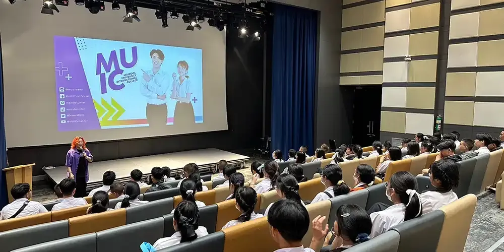 A group of 60 teachers and students from Phuket Wittayalai School visited Mahidol University International College (MUIC) on February 8, 2024.