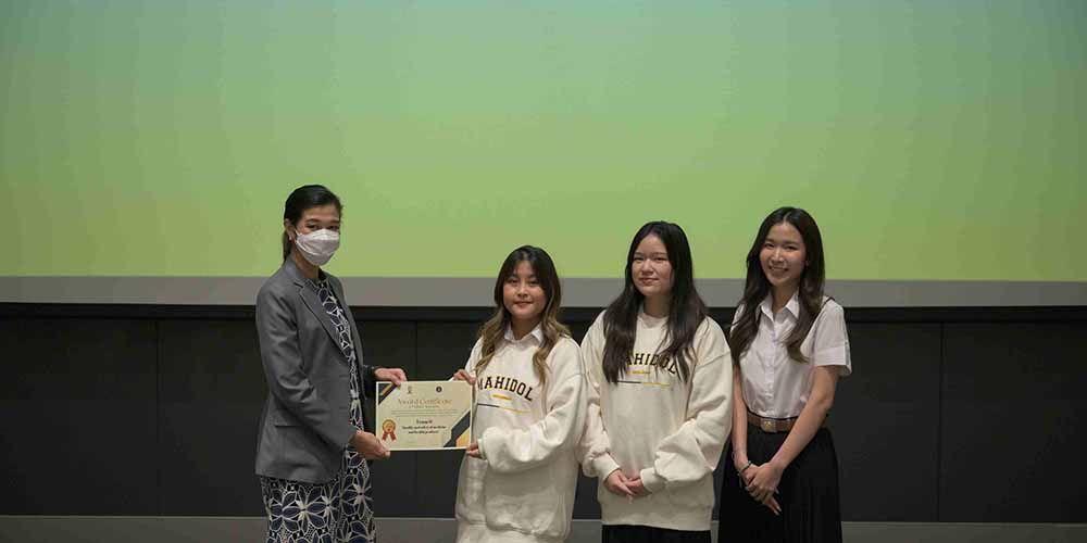 โดยได้จัดพิธีมอบรางวัลและฉายงานที่ได้รางวัลเมื่อวันที่ 5 เมษายน พ.ศ.2566 ณ ห้อง Screening Room วิทยาลัยนานาชาติ มหาวิทยาลัยมหิดล โดยได้รับเกียรติจากผู้ช่วยศาสตราจารย์ เภสัชกร ดร. ปรีดากร ชุณหะชา รองคณบดีฝ่ายนวัตกรรมและเทคโนโลยีสารสนเทศ คณะเภสัชศาสตร์ จุฬาลงกรณ์มหาวิทยาลัย และผู้ช่วยศาสตราจารย์ ดร. ภัสริณ รอดโพธิ์ทอง วงศ์กำแหง รองคณบดีฝ่ายการวางแผนกลยุทธ์ และพัฒนาคุณภาพ วิทยาลัยนานาชาติ มหาวิทยาลัย มหิดล เป็นประธาน และมอบรางวัลแก่ผู้ชนะเลิศ