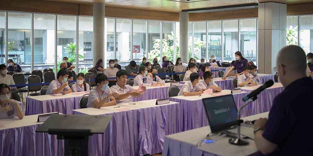 This quiz bee-type contest, which attracted 119 teams from leading high schools in Thailand, aimed at helping to develop students' English speaking skills and provide them with effective speaking activities under the guidance of teachers who are either native English speakers or are experts in the field.