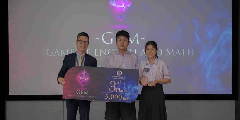 Mahidol University International College’s (MUIC), the Corporate Communication Section together with the Preparation Center for Languages and Mathematics (PC) held “Game of English and Math (GEM) Competition 2023” with the theme “Knowledge is Power” on January 14, 2023 at Charinyarasami Hall, Aditayathorn Building.