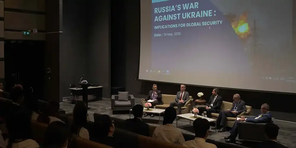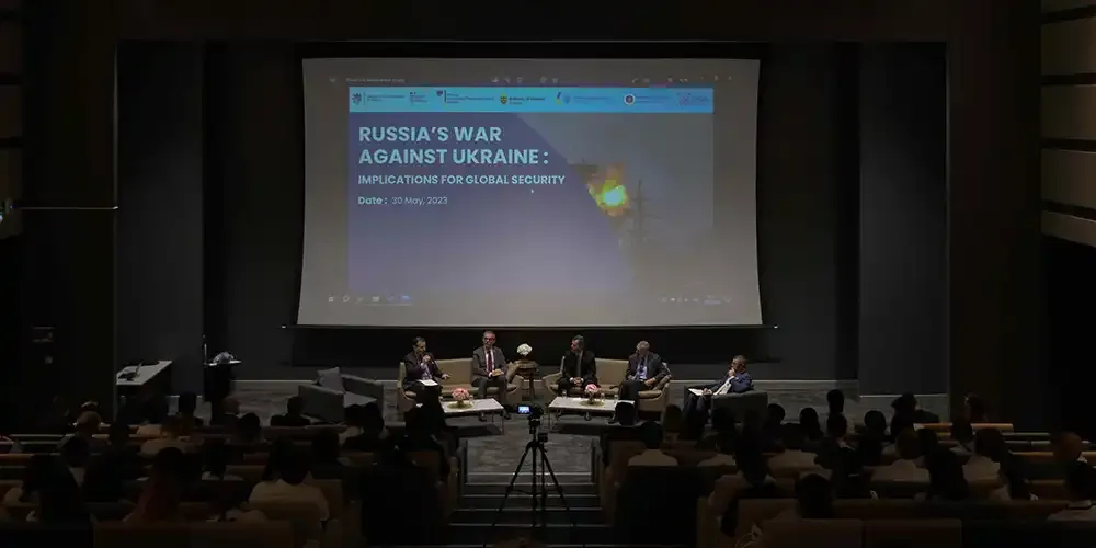 Distinguished guests were warmly welcomed to MUIC to discuss and address the profound impact of Ukraine's invasion on Europe and the world. The speakers unequivocally expressed their opposition to the war and extended full support to Ukraine.