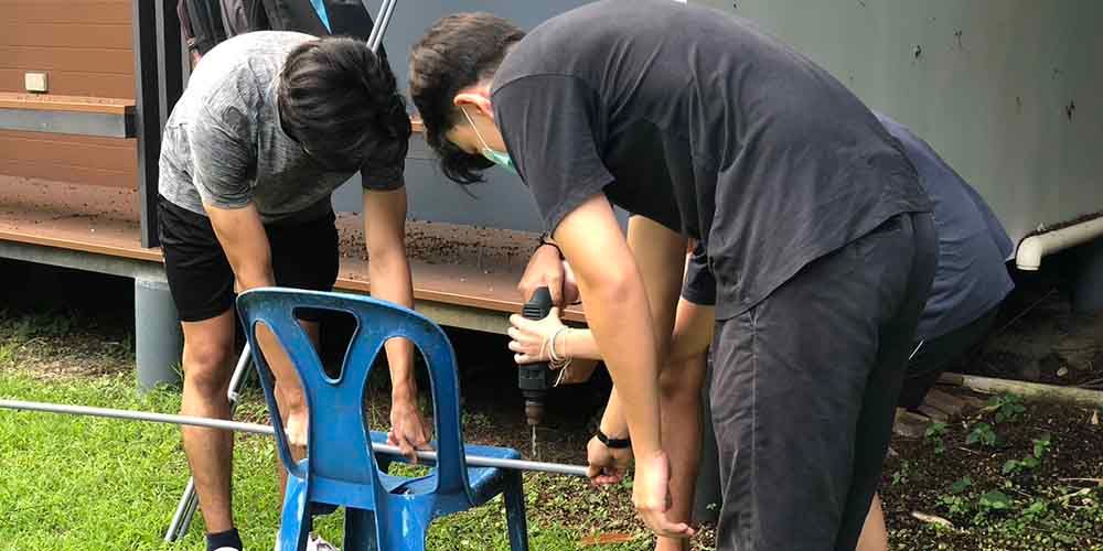 Composting is the process of converting organic matter, such as dead leaves, branches, and vegetable and fruit waste, into organic fertilizer. Before the activity began, the participants conducted an online session to provide brief information about composting and what participants will do during the activity. Then, there were three major sessions where the participants had to put all the organic materials into the bins, mix them, and add water to the bins as well as drilling and adding pipes. The rest of the sessions included mixing the materials and adding water weekly to maintain good conditions for decomposing.