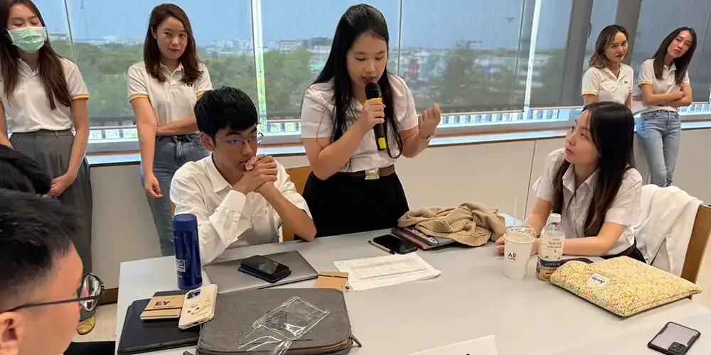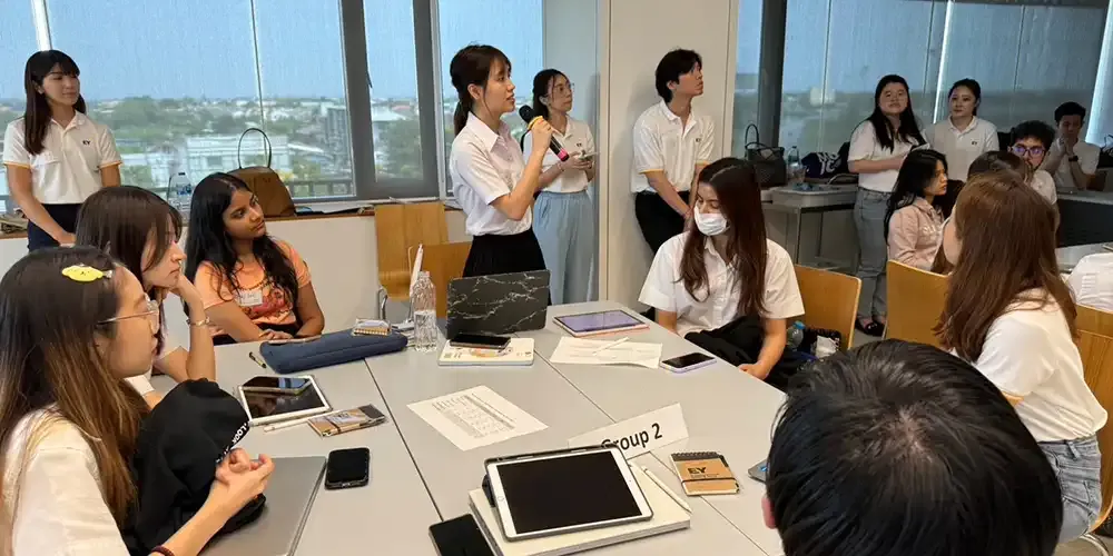 EY Corporate officials who are also MUIC alumni were the featured resource persons. Wissuta Klumthawarn of the Class of 2018 and Kanyanat Lerviriyaphan of the Class of 2023 discussed topics including “Transfer Pricing & What is Transfer Pricing?” under the overall workshop theme, “Think as a Consultant.”
