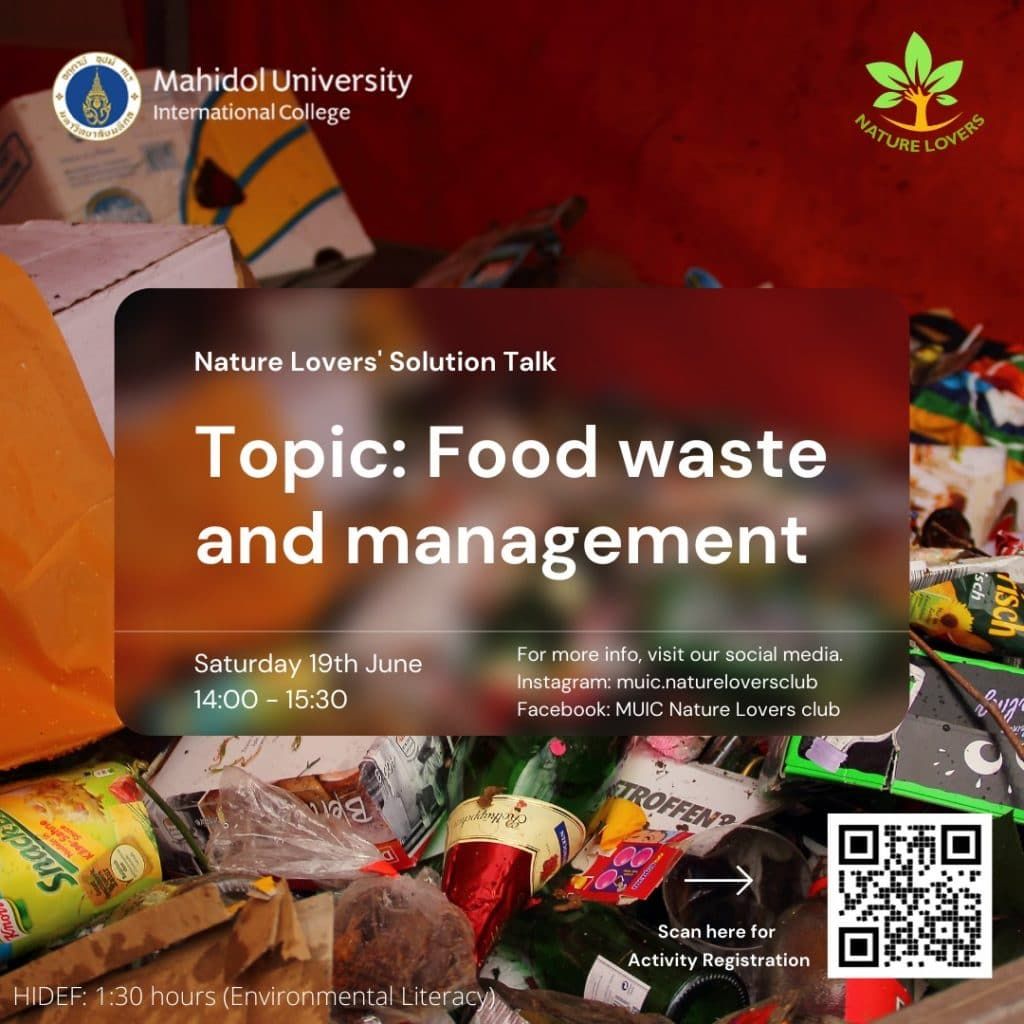 Here is the moment you have been waiting for. Our Nature Lovers Solution Talk will host an activity under the topic of Food Waste and Management.