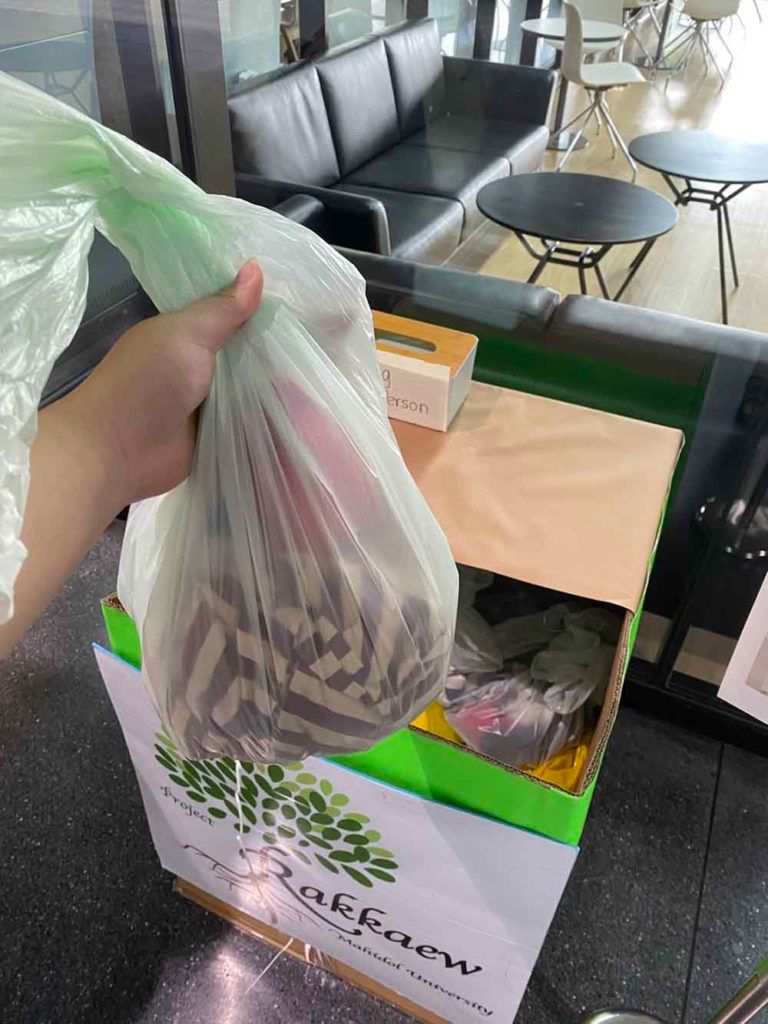 The club also screened a video entitled the “Konmari Method” to instruct the donors on how to classify their donated clothes. They were then asked to drop their bag of clothes (with the plastic bags provided by Rakkaew Club) next to Termtem Room (G Floor, Aditayathorn Building) or at the Activity Ground (1st Floor, Old Building).