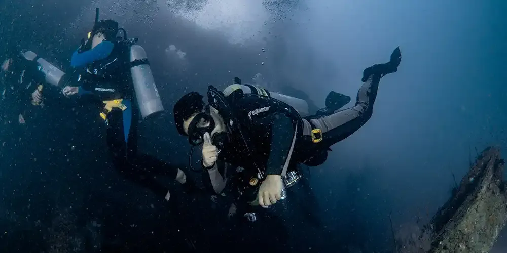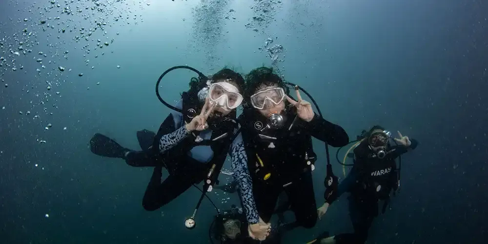 For the Open Water license, participants were required to perform various skills, including controlling descent with their dive buddy, mask removal and replacement, regulator clearing, stationary gas sharing, and more. For the Advanced license, they must complete navigation skills, perfect buoyancy, Hardeep Dive (wreck diving), DSMB, torch and hand signs, among others.