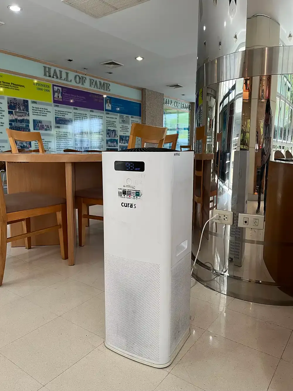- Air Purifiers MUIC has made a major investment to protect the health condition of its community members by providing air purifiers in every classroom and office. Maintenance work is performed every semester, including filter replacement.