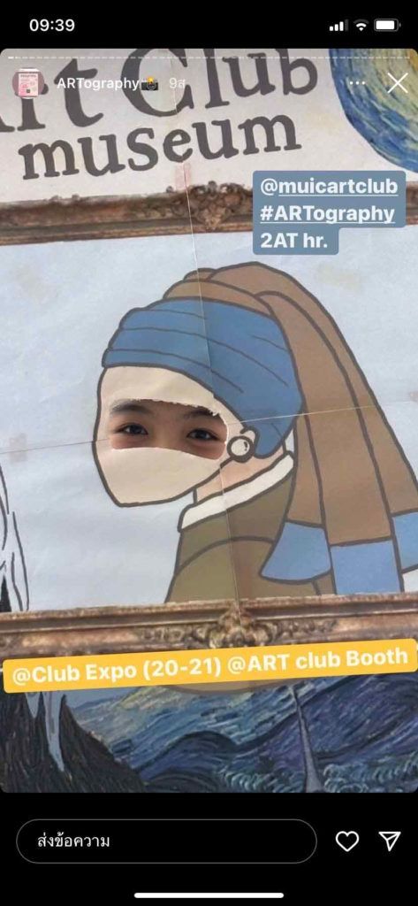 From September 19 to 24 2022, the club welcomed more than 50 participants who shared their ideas about art through photos. They had two ways to join. First, participants can share four photos related to art on their Instagram stories and tag @muicartclub. Second, in case that participants do not have a picture, the Art Club provided two photo booths at the Club Expo. Participants who visited the photo booths can choose to post the pictures taken there.