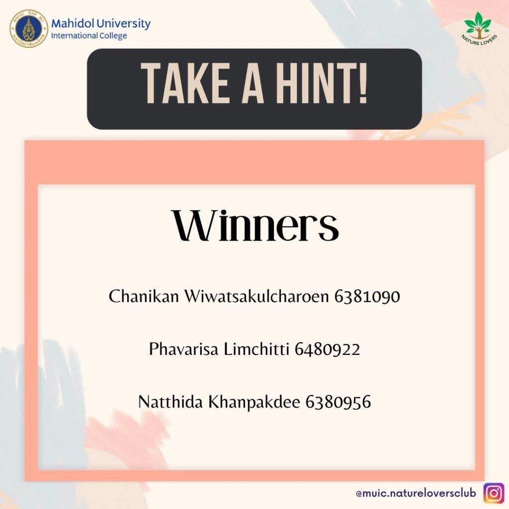 “Take a Hint!” was the last activity organized by Nature Lovers Club for Term 2 of academic year 2021 - 2022. This activity ran from March 7 to 16, 2022.