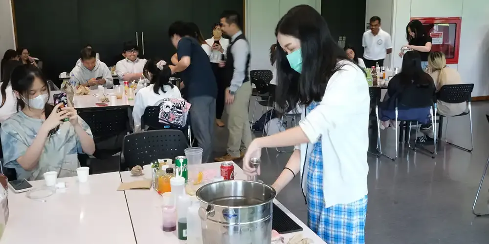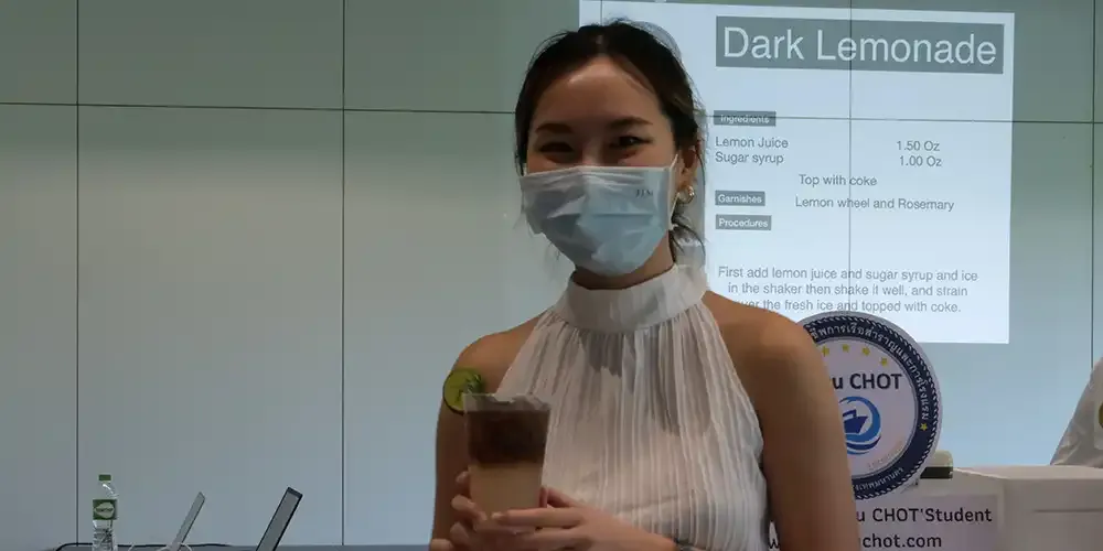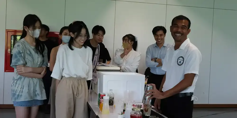 The THM Club’s first activity of the 3rd Trimester featured a guest speaker from Maruchot training school who taught 24 participating students the basics of making mocktails for many occasions. This activity, entitled “Drink! Drink! Mocktail!” took place on May 26, 2023 at Room A235, Exhibition Hall, Aditayathorn Building.