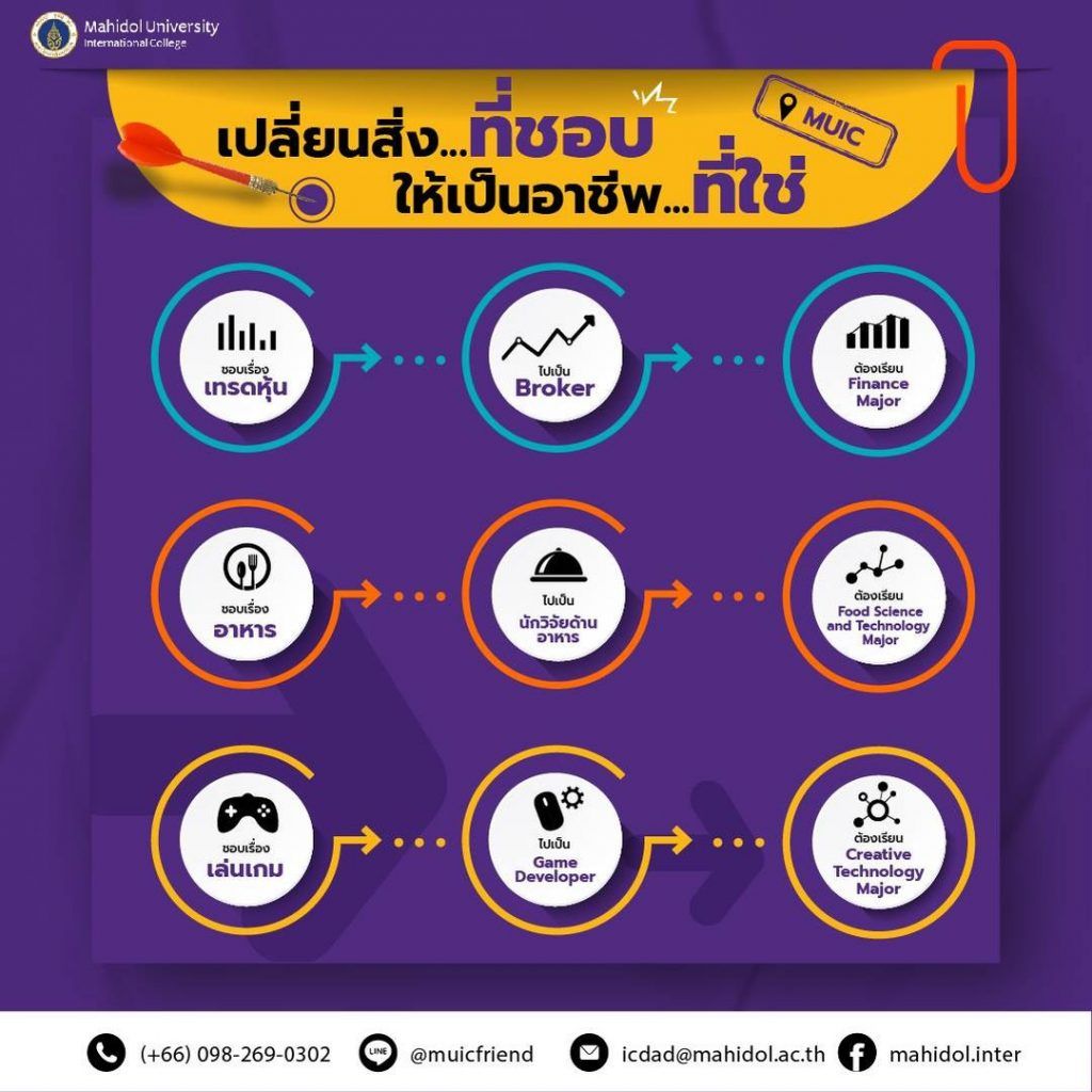We understand that each student has their own preferences. At MUIC, we encourage each person to do what they enjoy and turn it into a career which they can have fun doing