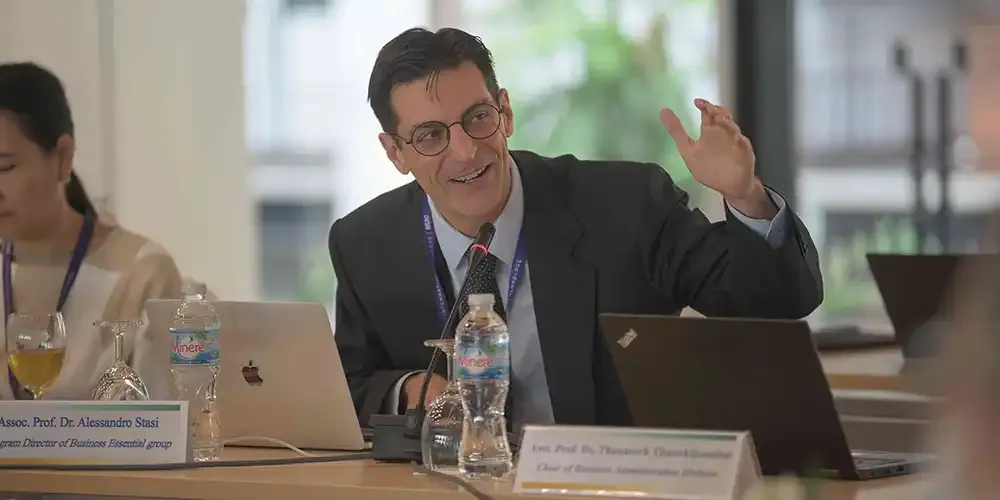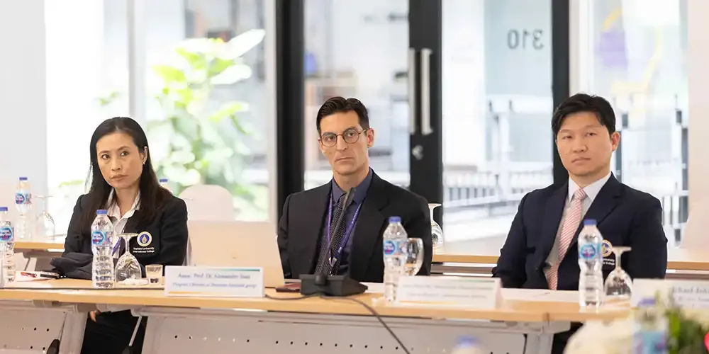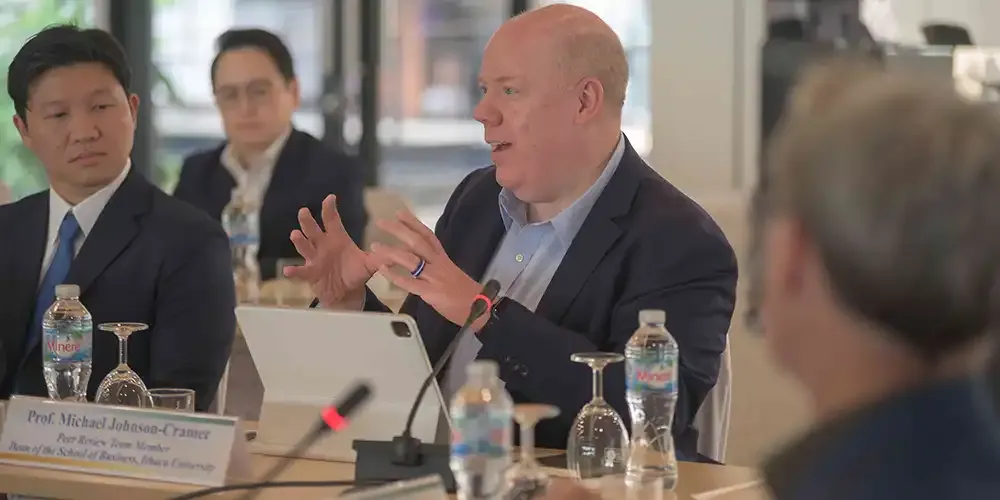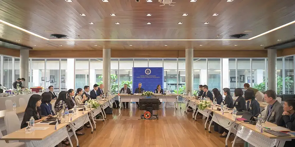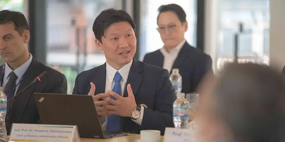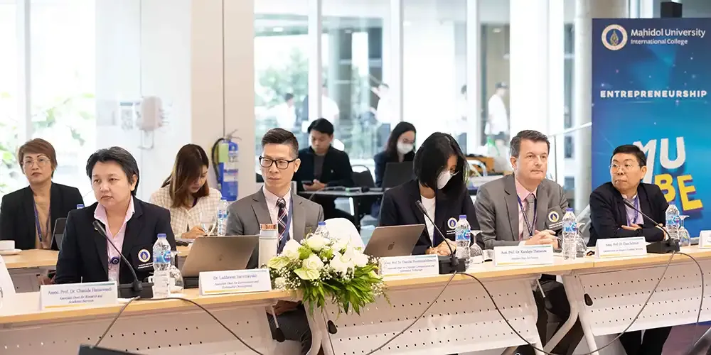 วันที่ 12 มีนาคม 2567 ศาสตราจารย์ นายแพทย์บรรจง มไหสวริยะ อธิการบดีมหาวิทยาลัยมหิดล และศาสตราจารย์ แพทย์หญิงจุฬธิดา โฉมฉาย คณบดีวิทยาลัยนานาชาติ มหาวิทยาลัยมหิดล พร้อมด้วยผู้บริหาร คณาจารย์กลุ่มสาขาวิชาบริหารธุรกิจ วิทยาลัยนานาชาติ มหาวิทยาลัยมหิดล ร่วมรับฟังผลการประเมินการรับรองคุณภาพทางการศึกษาด้านบริหารธุรกิจและการบัญชีทั่วโลก (Association to Advance Collegiate Schools of Business: AACSB) จาก คณะกรรมการประเมิน Peer Review Team นำโดย Prof. Stephen Kelly, Dean of the Business School จาก Massey University Prof. Shing-yang Hu, Dean of College Management จาก National Taiwan University และ Prof. Michael Johnson-Cramer, Dean of the Business School จาก Ithaca College ที่เข้าตรวจประเมินระหว่างวันที่ 10 – 12 มีนาคม 2567 โดยมีวัตถุประสงค์เพื่อประเมินคุณภาพการศึกษาของกลุ่มสาขาวิชาบริหารธุรกิจ วิทยาลัยนานาชาติ มหาวิทยาลัยมหิดล ตามมาตรฐานของ AACSB ณ ห้องจรินทร์ยารัศมิ์ อาคารอทิตยาทร วิทยาลัยนานาชาติ มหาวิทยาลัยมหิดล